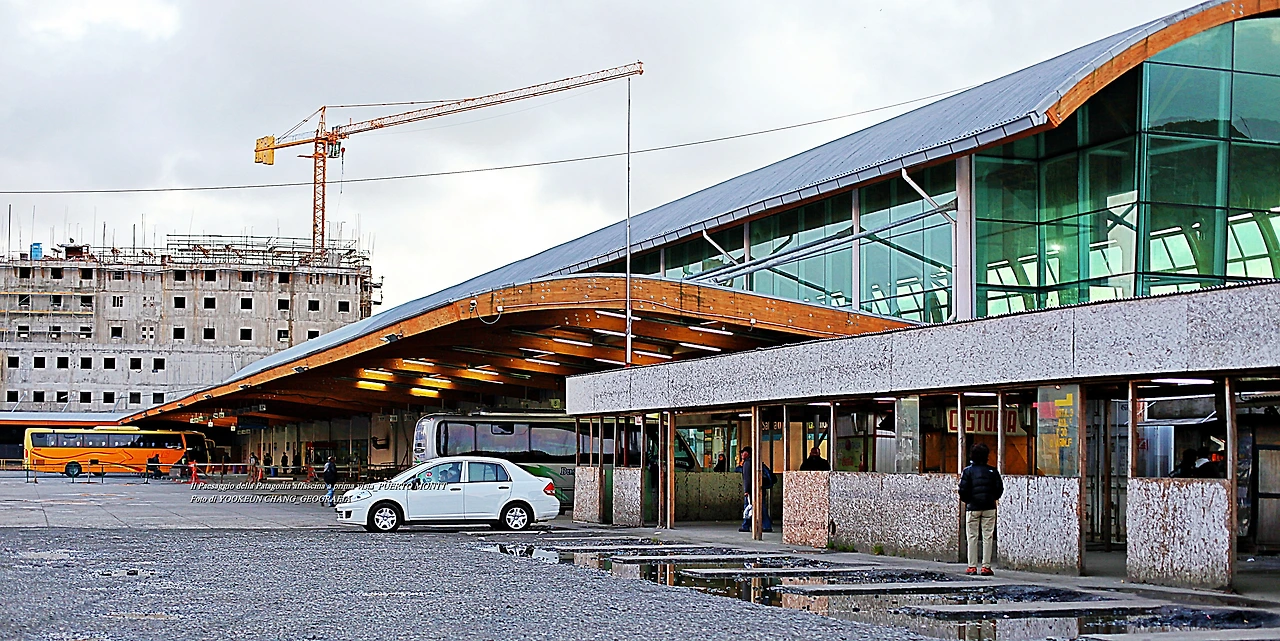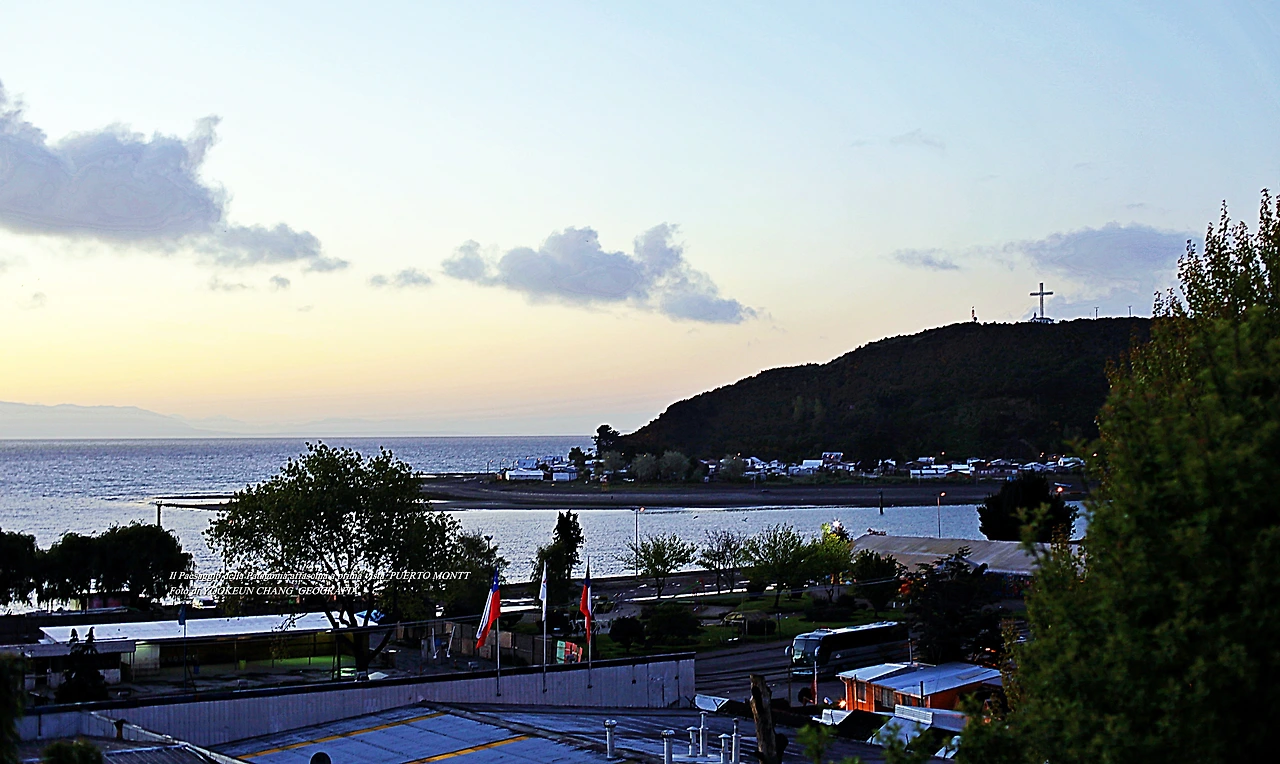 우리가 서 있는 언덕 위에서 바라보면 앙쿠드 만(Golfo de Ancud, 灣)이 보이고, 우측으로 이슬라 땡글로 섬(Isla Tenglo)이 손에 잡힐 듯 가깝다. 그리고 수평선 위에 거뭇하게 보이는 곳이 장차 우리가 만나게 될 미지의 세상이다. 언덕 아래 버스 터미널이 보이기 시작한다.