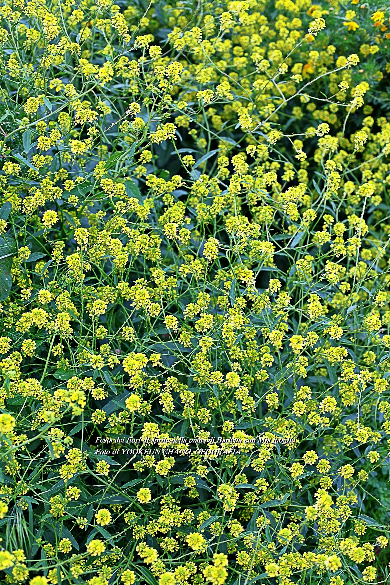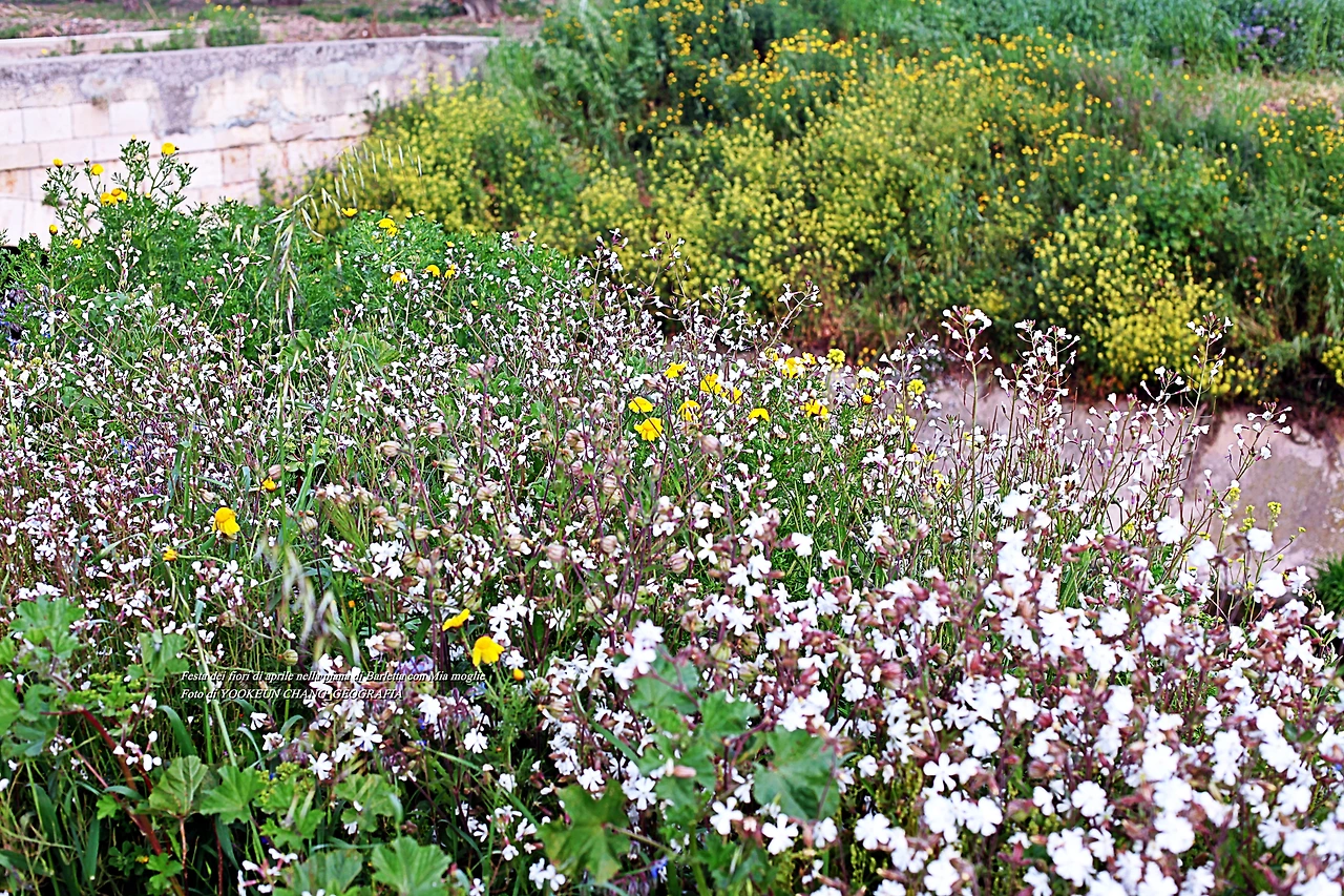 광활한 올리브 나무 과수원 곁으로 흐르는 천변에 유채꽃은 물론 이름을 알 수 없는 풀꽃들이 자지러진다.