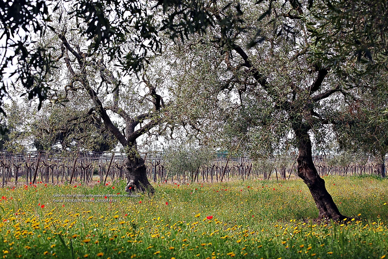 그런데 그 작은 수고애 비하면 하늘이 우리 앞에 내놓은 풍경은 기적이나 다름없다. 아니 기적 그 자체이다. 하늘이 우리 앞에 꽃길을 예비해 둔 것이랄까. 바를레타 평원 가득한 부활의 현장에는 풀꽃들이 올리브나무 고목과 한데 어우러져 떼창으로 부활의 노래를 부르고 있었다. 그 현장을 사진과 영상에 남겼다.