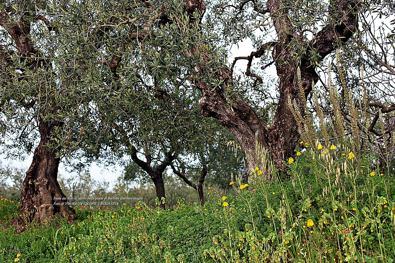 그중 올리브유 최대생산국가는 스페인(9.819.569/La tonnellata (t))이며, 이탈리는 두 번째로 많은 올리브유를 생산(1.877.222 톤)하는 국가이다. 3위는 지중해 연안 북 아프리카 모로코(Marocco)로 1.561.465 톤, 그 뒤로 터키(Turchia, 1.500.467 톤) 등으로 이어지고 있다. 우리가 이틀 연속 다녀온 이탈리아 남부 뿔리아 주 바를레타 평원.. 그러니까 뿔리아 주는 이탈리아에서 올리브유를 제일 많이 생산하는 곳이며 하니와 나는 그곳을 둘러보고 있는 것이다.