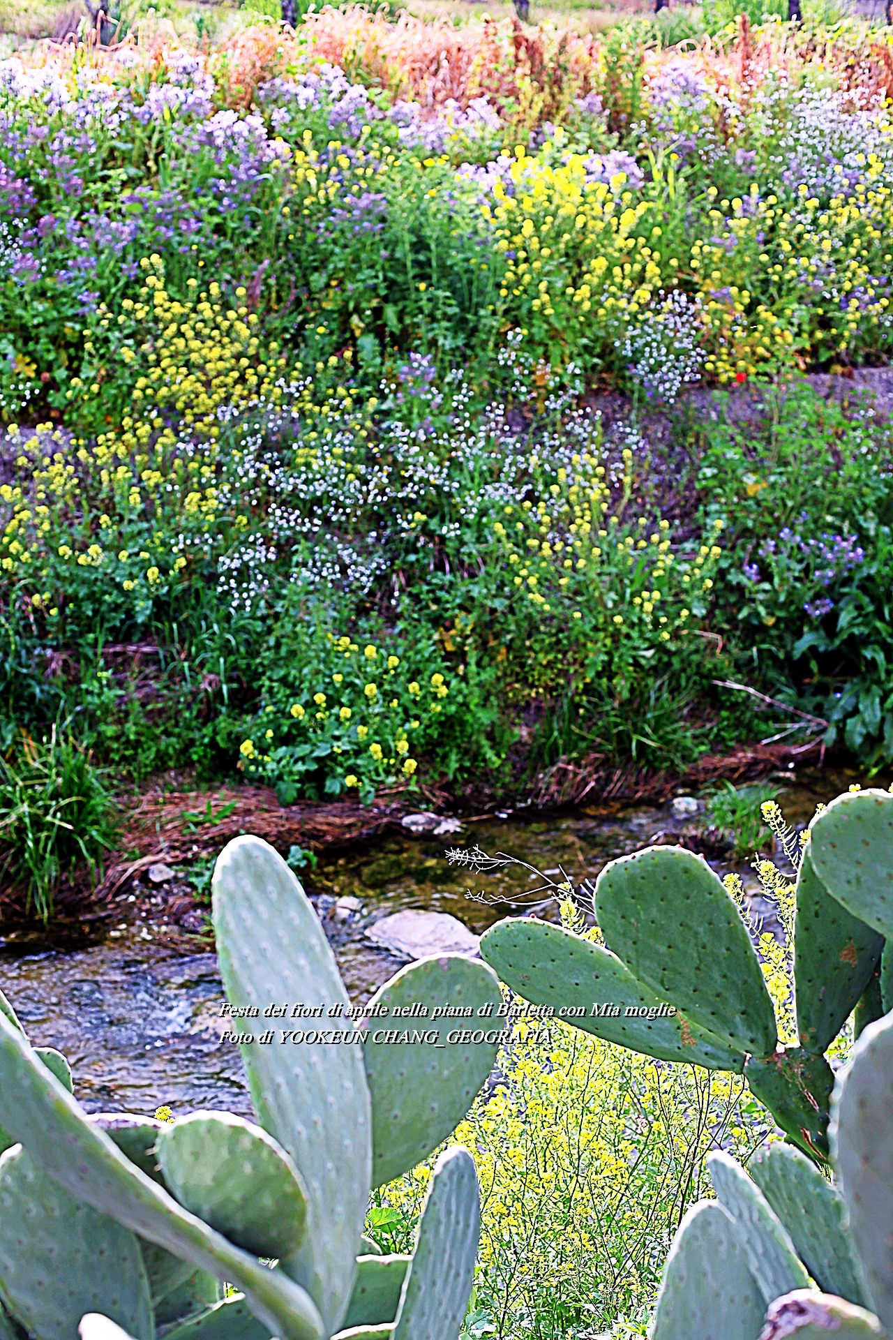 샛노란 유채꽃이 선인장과 함께 어우러져 눈부시게 피어있는 곳. 이곳은 우리가 살고 있는 이탈리아 남부 뿔리아 주 바를레타 교외에 있는 올리브 과수원 곁을 흐르는 천변이다. 천의 이름은 치아뻬따 깜맛지오(Ciappetta-Camaggio)라 부른다. 천의 발원지는 바를레타 평원에 위치한 안드리아(Andria)와 또 한 곳은 평원이다.