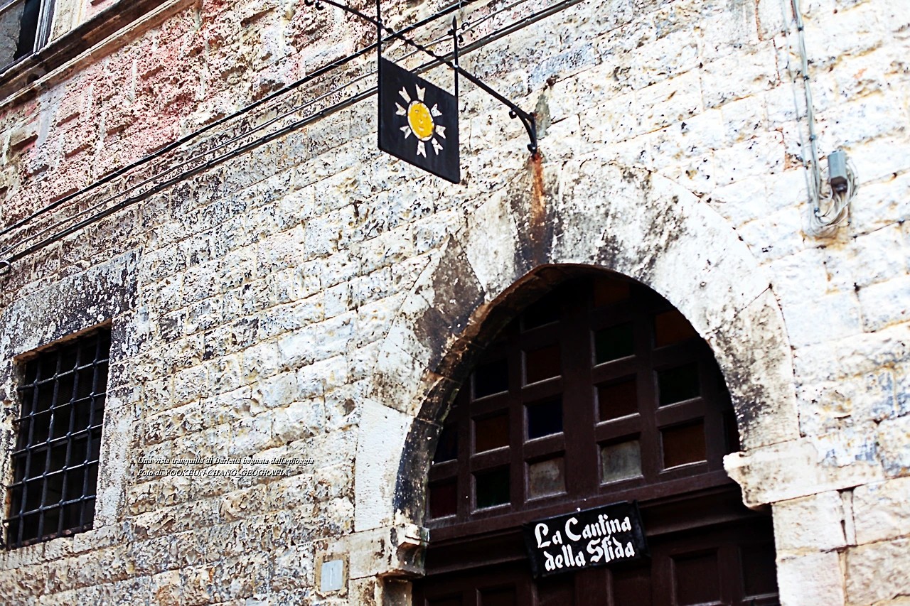 어느 날부터 하니의 그림 선생님이 된 루이지의 화실로 가려면, 이 도시의 정체성이 깃든 라 깐띠나 댈라 스퓌다(La Cantina della sfida) 앞을 지나쳐야 했다. 관련 포스트에서 언급했지만 비에 흠뻑 젖어있는 깐띠나 댈라 스퓌다는 한 때 여관이었다. 무역상들 혹은 이곳을 점령했던 프랑스인들과 스페인 사람들이 현지인들과 뒤섞여 술잔을 기울이던 곳.