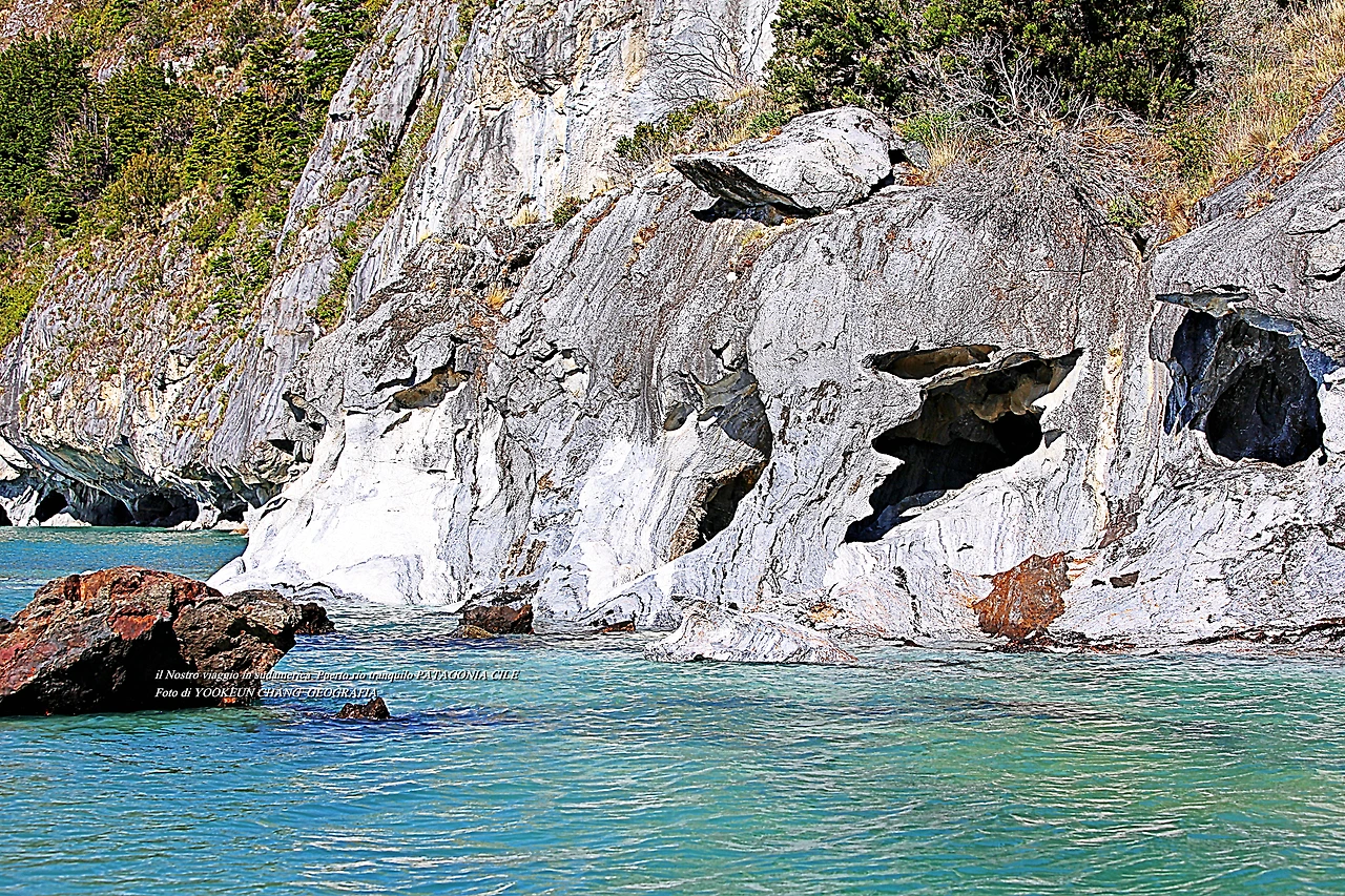 대리석(으로 만들어진) 성당이라는 이름이 붙여진 이곳은, 우리가 머물렀던 숙소에서 멀지 않은 곳으로 라고 헤네랄 까르레라(Lago Buenos Aires/General Carrera)의 한쪽 모퉁이에 위치해 있다. 아직 대리석 성당을 만나지 못한 상태였지만 비취 빛깔의 호숫물에 비친 동굴들은 여행자의 입을 다물게 했다.