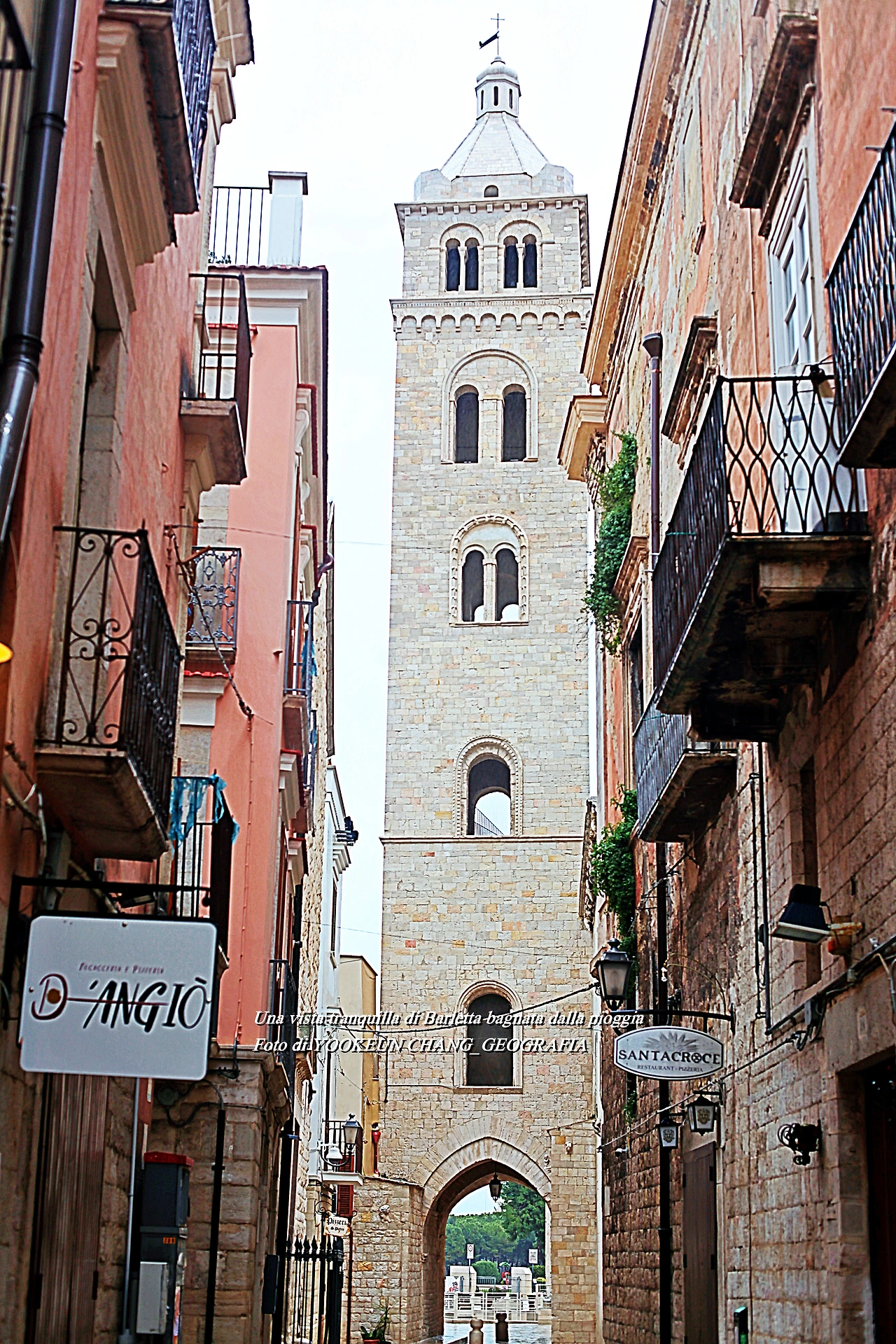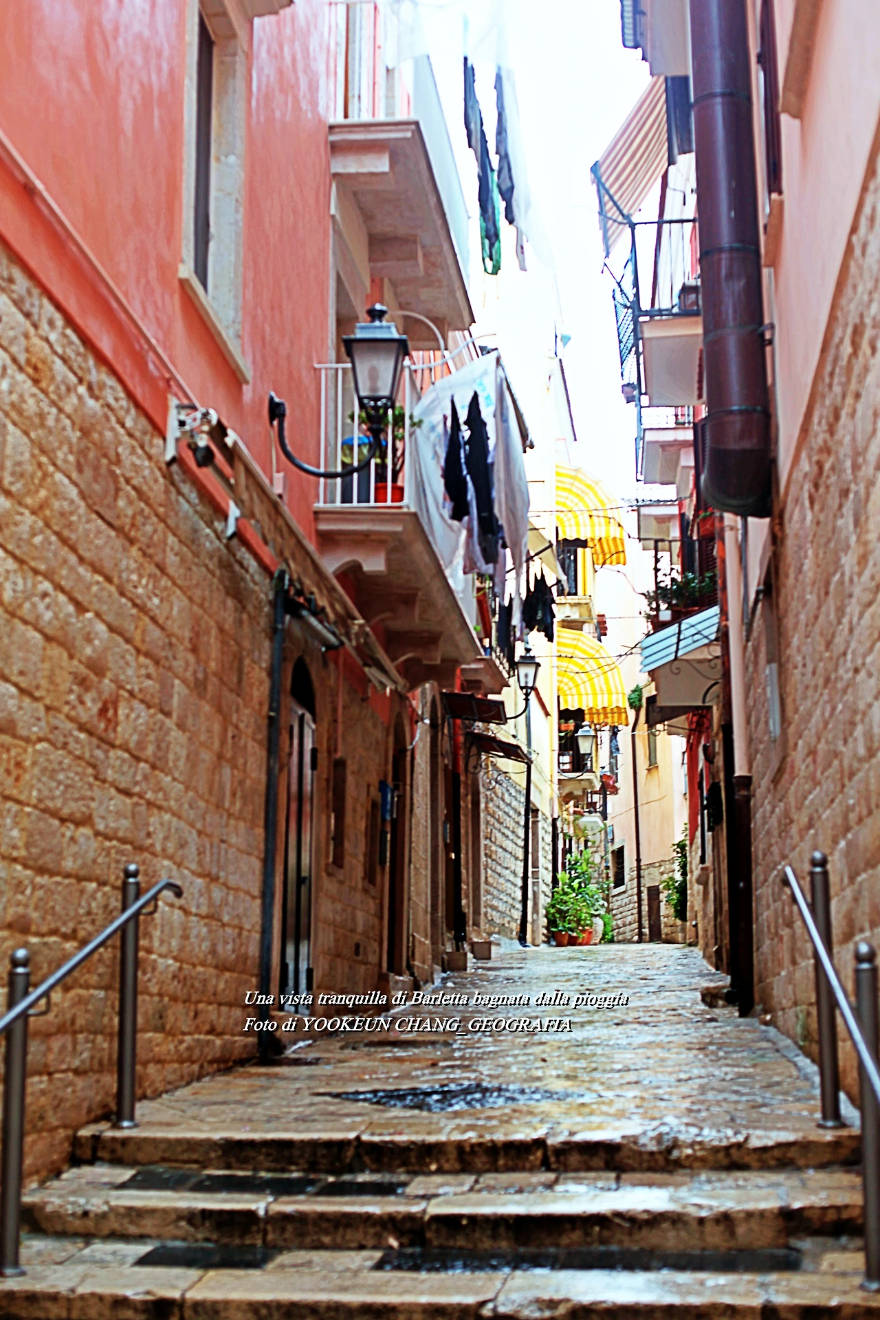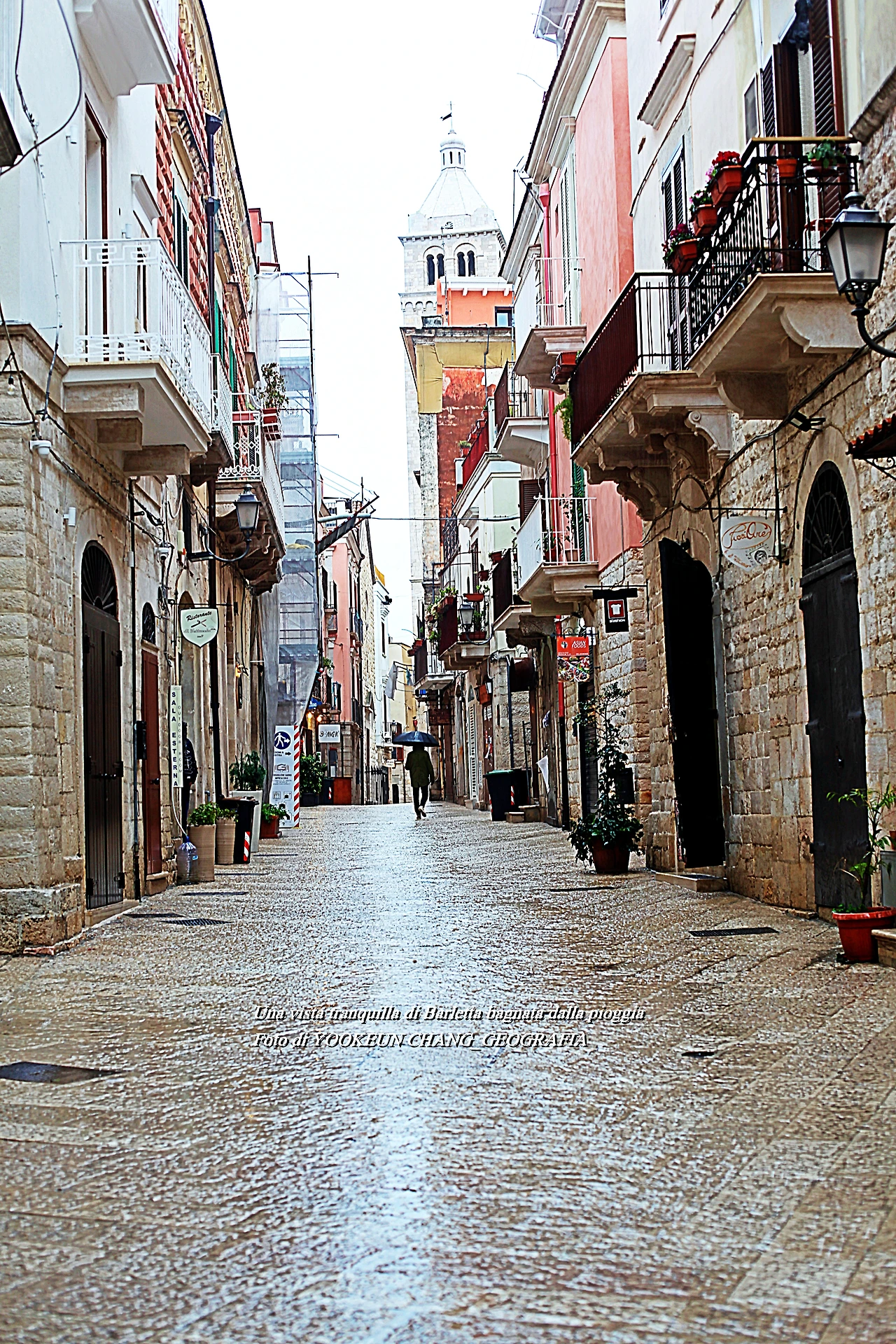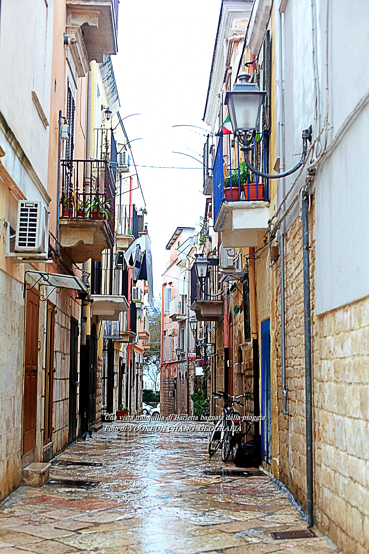 바를레타 두오모의 종탑 아래 아치형 굴다리를 지나면 나지막한 집들이 골목을 사이에 두고 옹기종기 모여있는 정겨운 모습을 볼 수 있다. 코로나가 창궐하기 전 이 골목에는 아주머니와 할머니들이 삼삼오오 모여 앉아 수다를 떨기도 한 곳이기도 하다. 그런데 대략 3년 전부터 그런 정겨운 풍경이 사라지고만 것이랄끼..