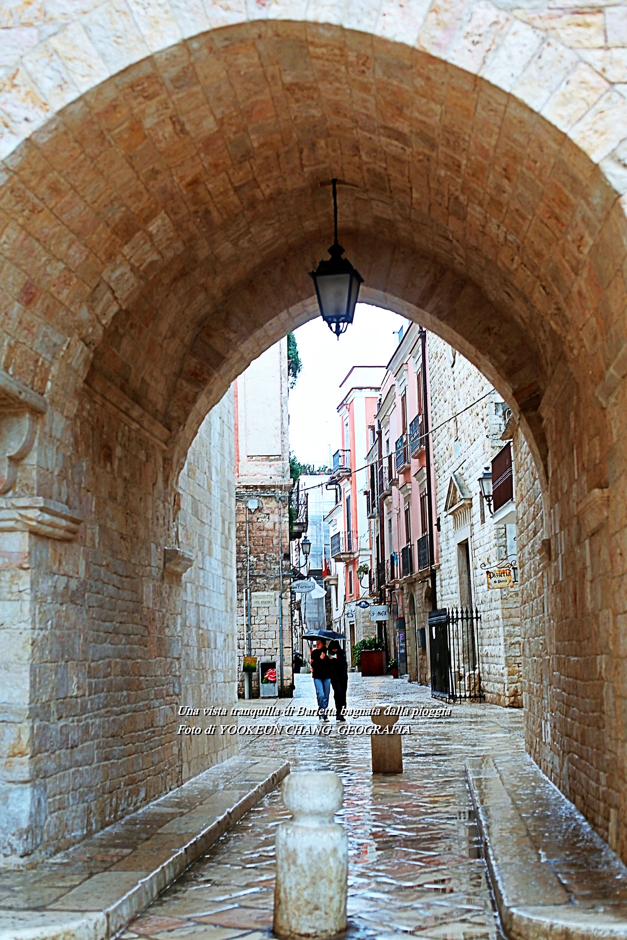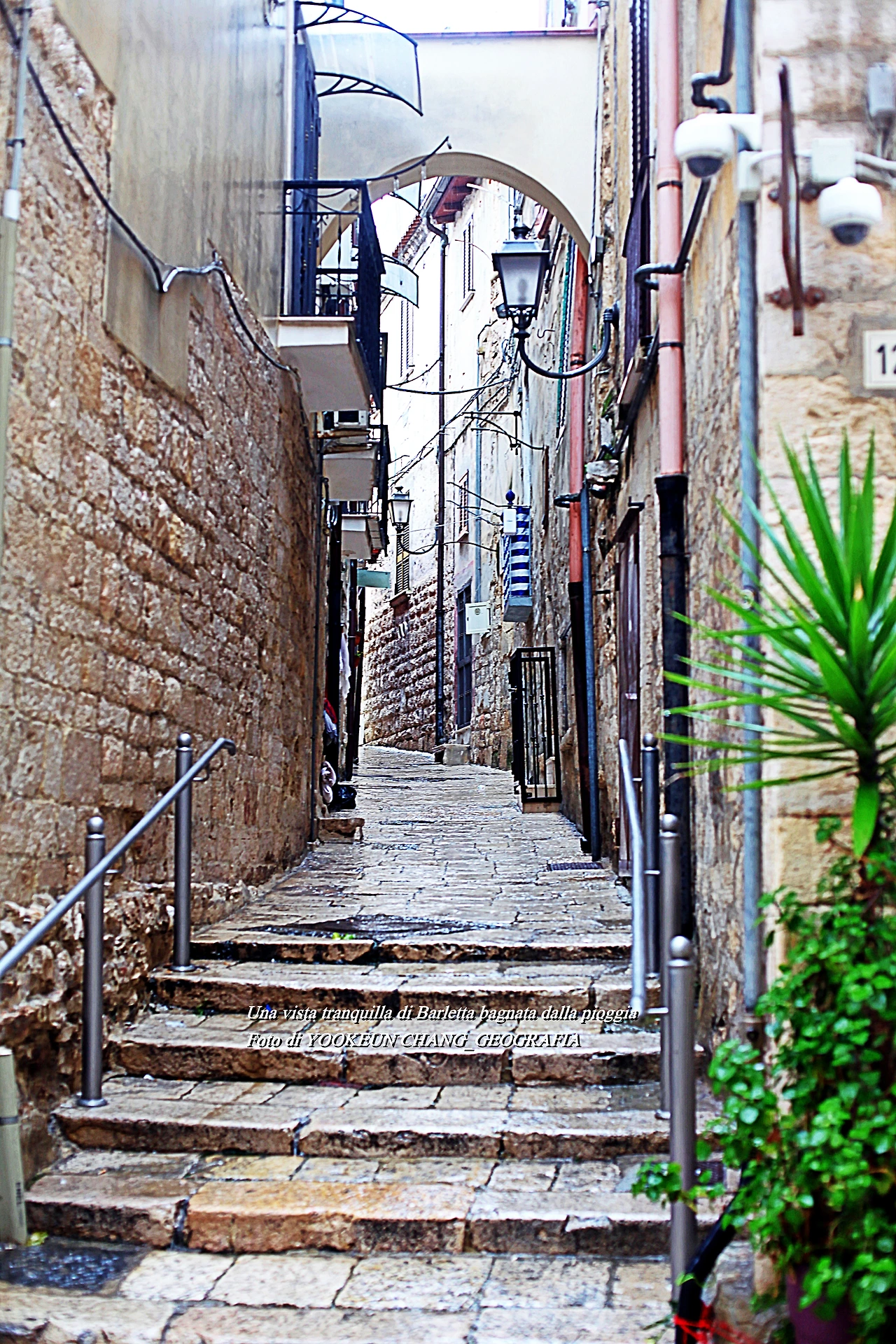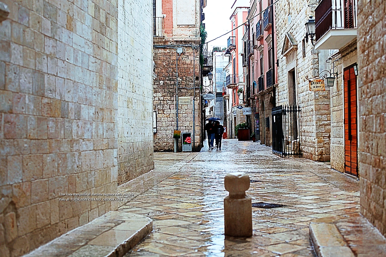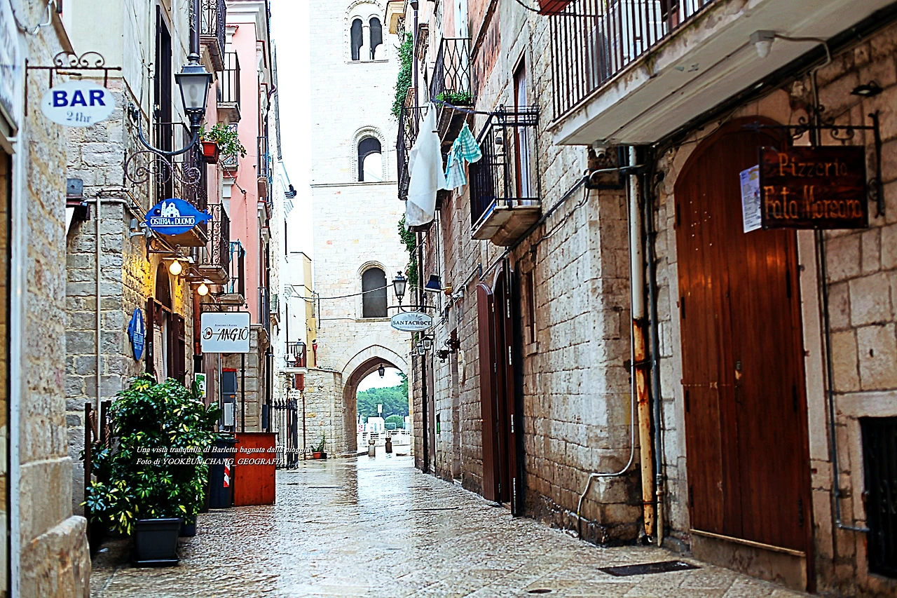 바를레타 두오모의 종탑 아래 아치형 굴다리를 지나면 나지막한 집들이 골목을 사이에 두고 옹기종기 모여있는 정겨운 모습을 볼 수 있다. 코로나가 창궐하기 전 이 골목에는 아주머니와 할머니들이 삼삼오오 모여 앉아 수다를 떨기도 한 곳이기도 하다. 그런데 대략 3년 전부터 그런 정겨운 풍경이 사라지고만 것이랄끼..