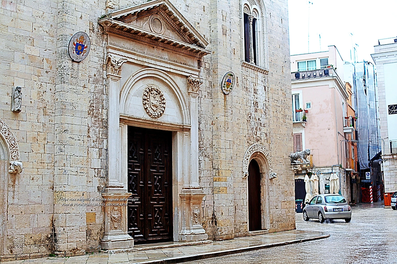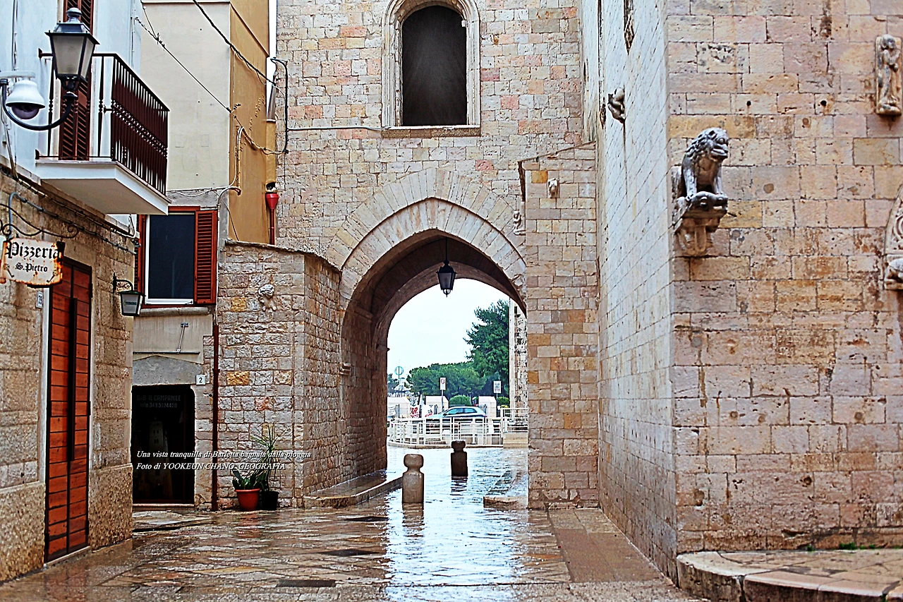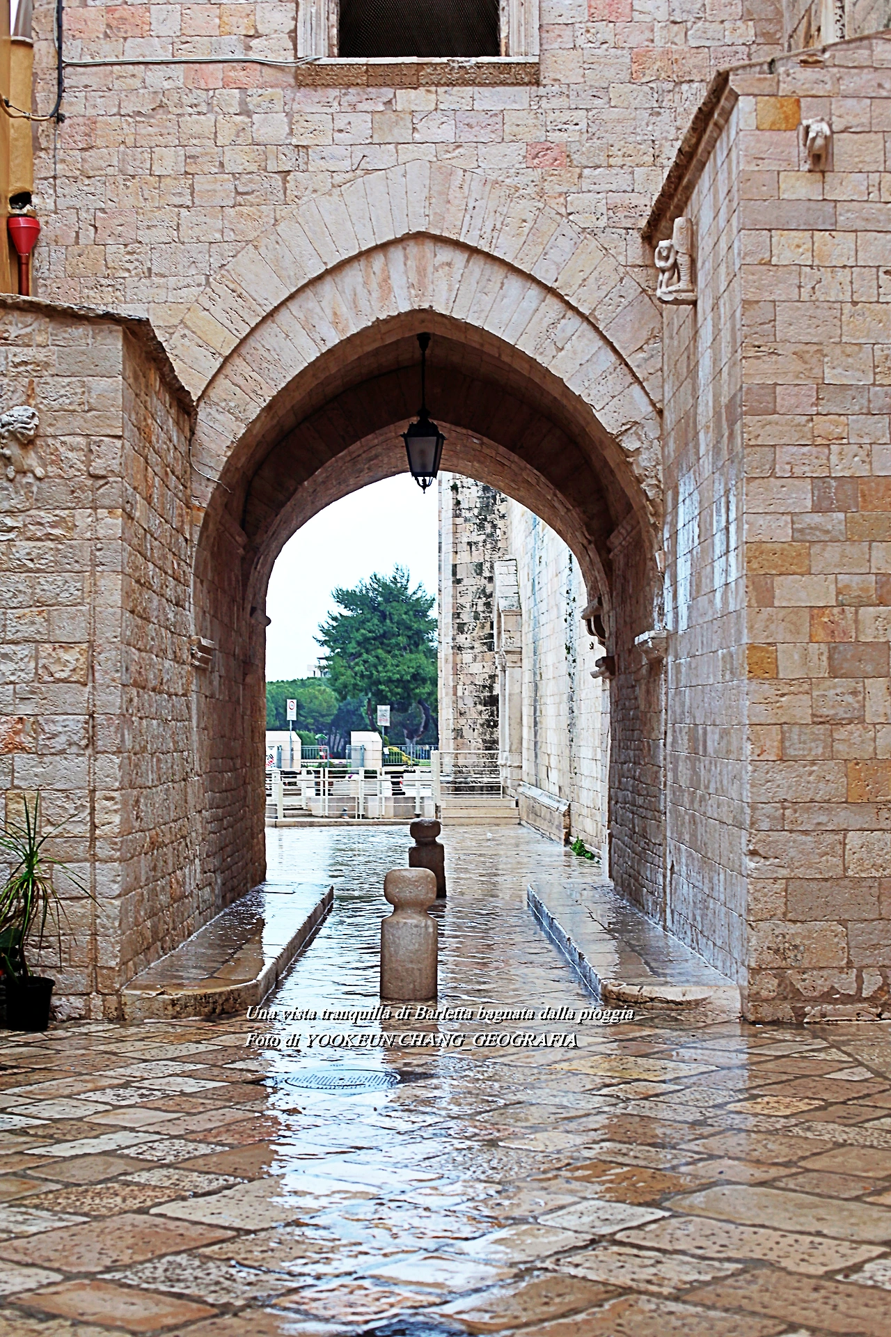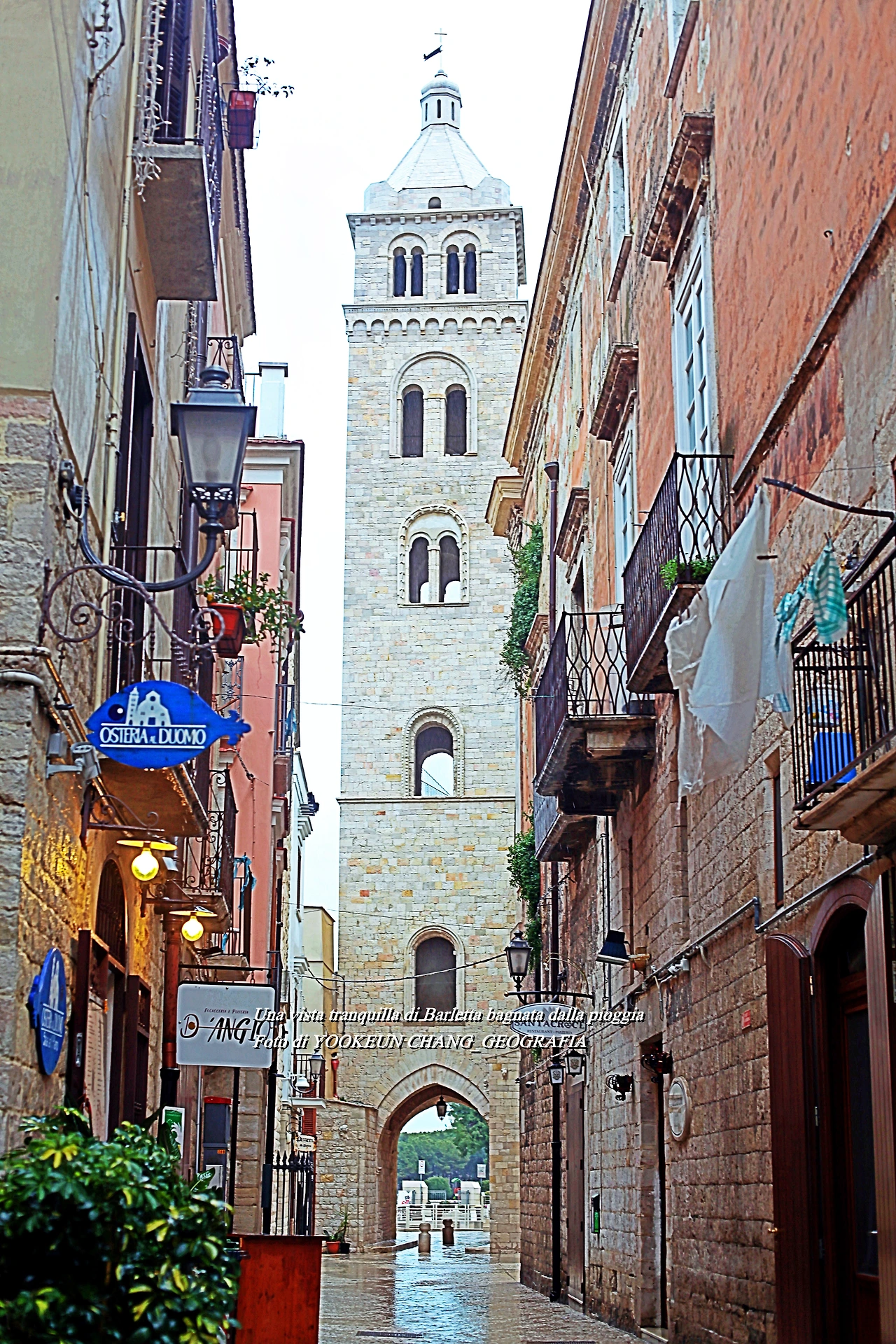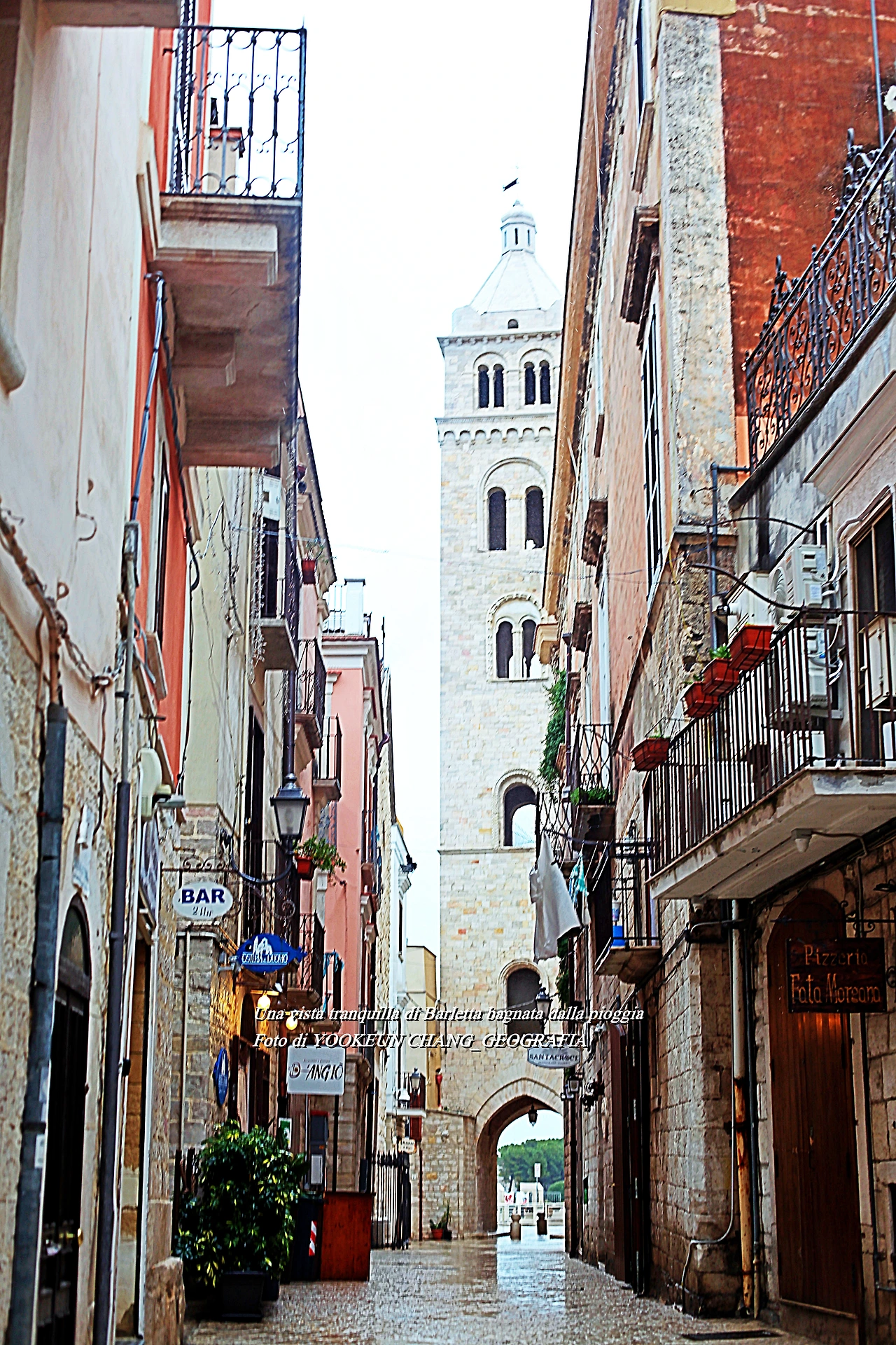 조금 전 굴다리 아래 저편 바를레타 성에서 천천히 걸어서 바를레타 두오모를 둘러보고 있다. 바닥은 비에 젖어 반들반들.. 대리석이 빛을 발하며 도시를 운치 있게 만드는 것이다.