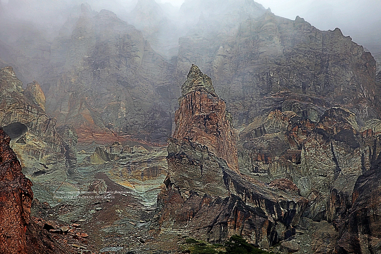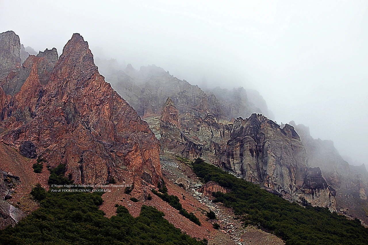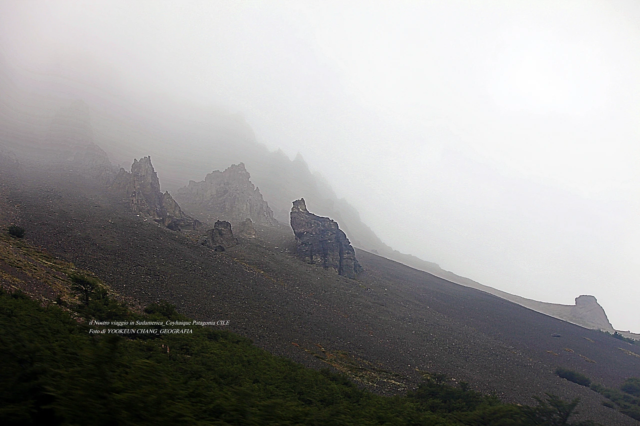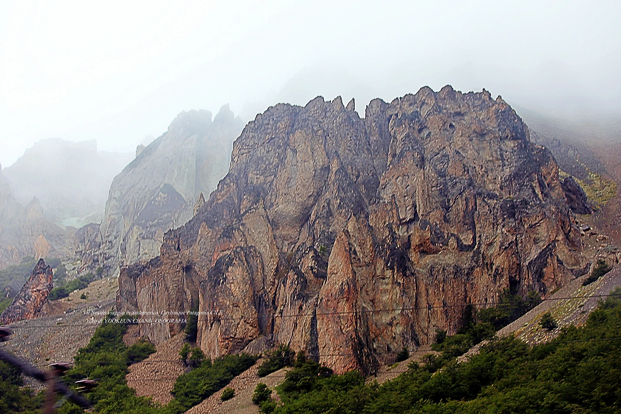 그때 등장한 풍경들을 고갯마루 꼭대기에 내려다보니 우리가 늘 봐 왔던 풍경과 사뭇 다른 풍경들이 펼쳐지고 있었다. 눈앞에 펼쳐진 장관을 자세히 살펴보면 안데스 산맥으로 이어지는 파타고니아 곳곳의 계곡과 산군들 모두 바위 덩어리로 이루어진 것을 알 수가 있다.