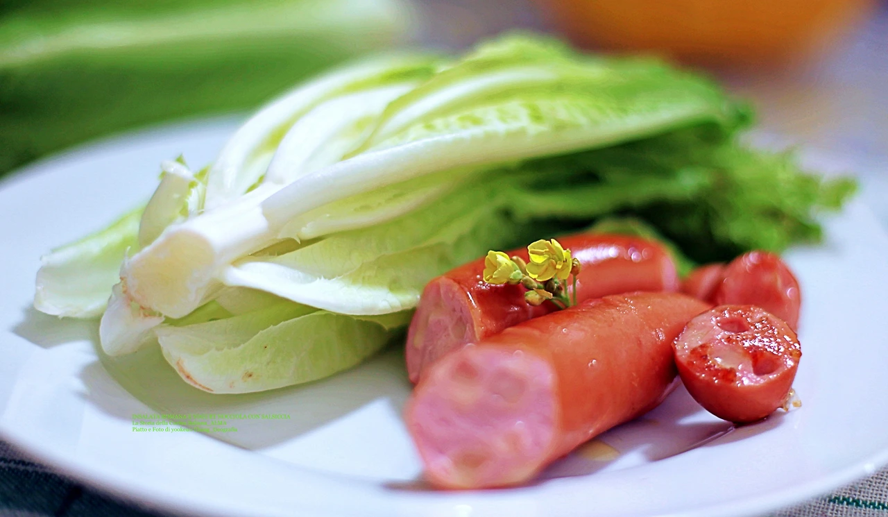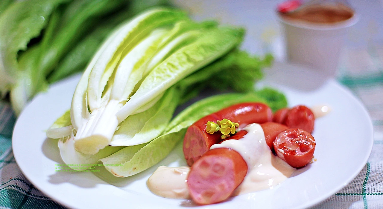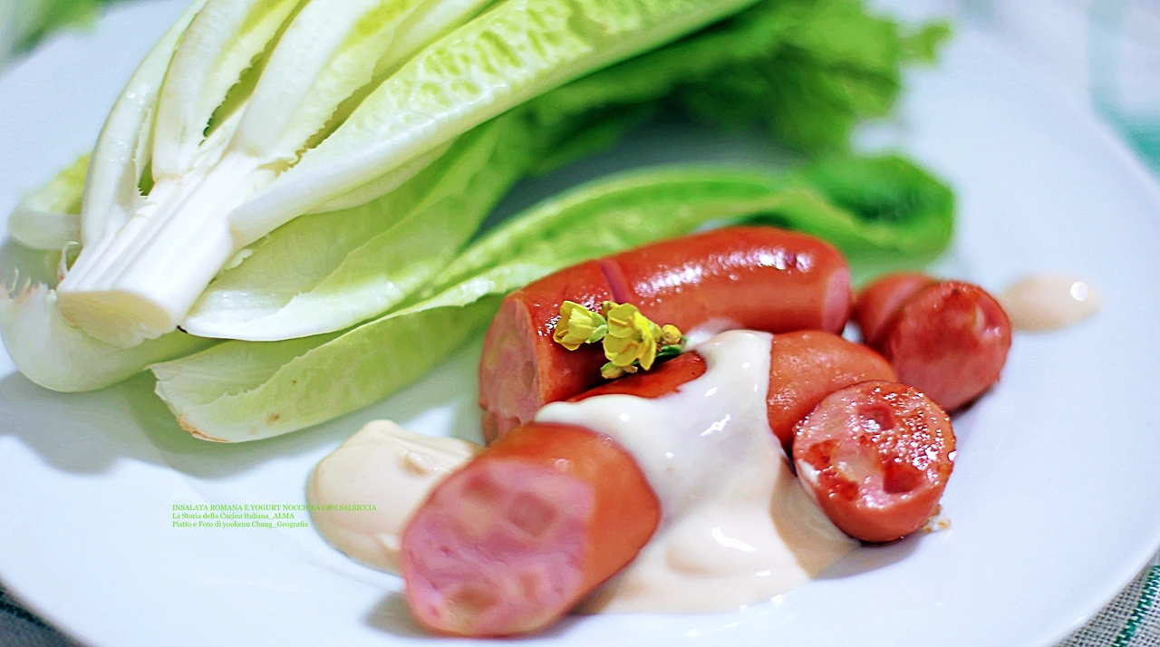 INSALATA ROMANA E YOGURT NOCCIOLA CON SALSICCIA