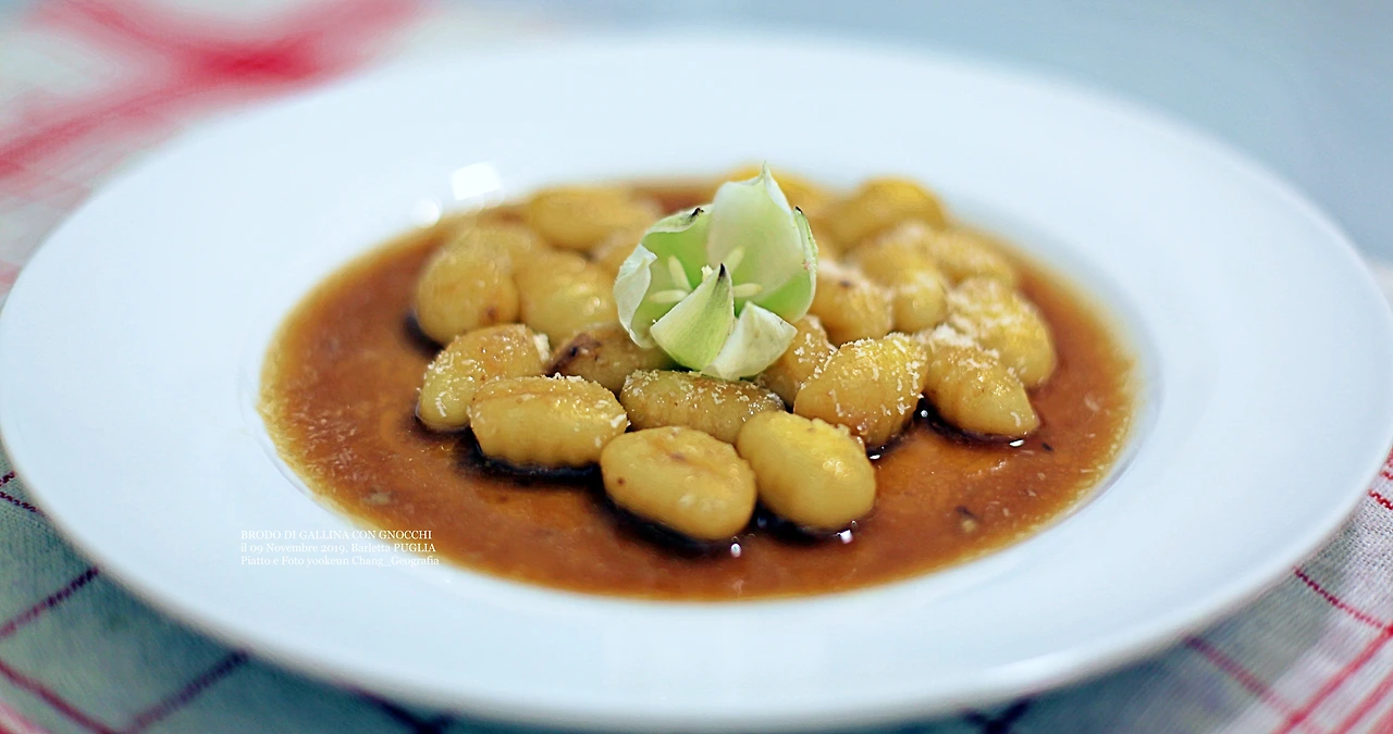 우리가 자주 먹는 닭고기는 기름에 튀겨 먹기도 하고 백숙으로 삶아 먹기도 하고 찜을 해 먹기도 한다. 하지만 오늘 소개해 드리는 이 리체타의 특징은 맹물을 전혀 사용하지 않았다. 그렇다면 어떻게 닭 육수를 만들며 거기에 수제비(뇨끼를 이렇게 부르기로 한다)까지 쪄낼까..