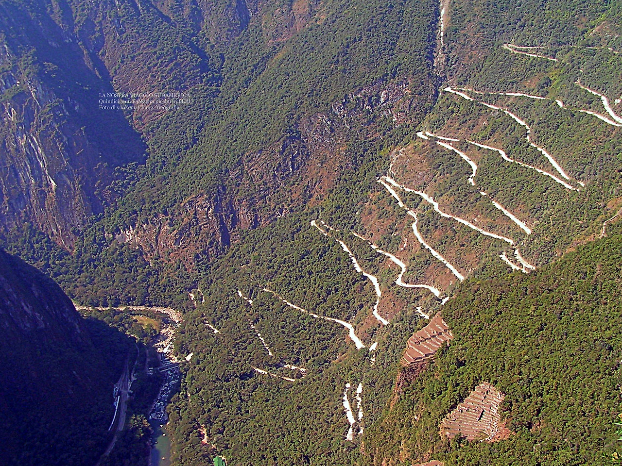 깎아지른 벼랑 아래로 우루밤바 강이 흐르고 그 곁으로 쿠스코로부터 이어진 철길이 보인다. 우리는 저곳을 하루 종일 걸어 아구아 깔리엔떼스에 도착했다.