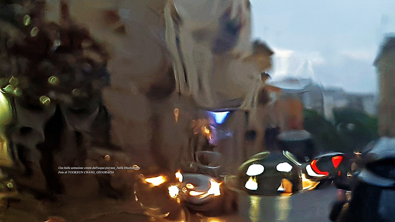 지난 주말, 우리가 살고 있는 이탈리아 남부 뿔리아 주 바를레타에 두 차례 비가 오셨다. 얼마나 시원한지..한동안 따끈한 날씨가 지속되면서 이제나 저제나 비가 오시기를 기다렸는데 하늘의 응답이 도달한 것이다. 이때를 기다렸다는 듯이 집 앞에 주차해 둔 자동차 속에서 카메라 놀이를 시작했다. 유소년기에 하던 버릇이 다른 버전으로 발현되었다고 할까.. 그 장면을 사진과 영상에 담았다.