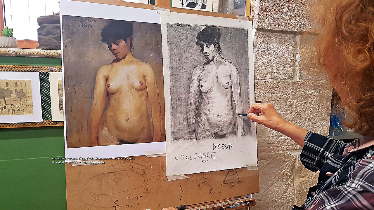 서기 2022년 6월 16일 아침나절(현지시각), 우리가 살고 있는 이탈리아 남부 뿔리아 주 바를레타서 오랜만에 하니의 그림 수업 풍경 사진첩을 열었다. 그곳에는 새로 시작한 과제물이 등장했다. 과제물은 한 여성의 벌거벗은 몸(누드)으로 생각보다 까칠한 소묘 과정이 필요하다. 수업을 시작하기 전 그녀의 그림 선생님 루이지(Luigi lanotte)는 몇 장의 대상을 그녀 앞에 놓고 선택을 하게 한다. 그렇게 시작된 누드 소묘는 남녀 모두 꽤 많은 작품을 남겼다.