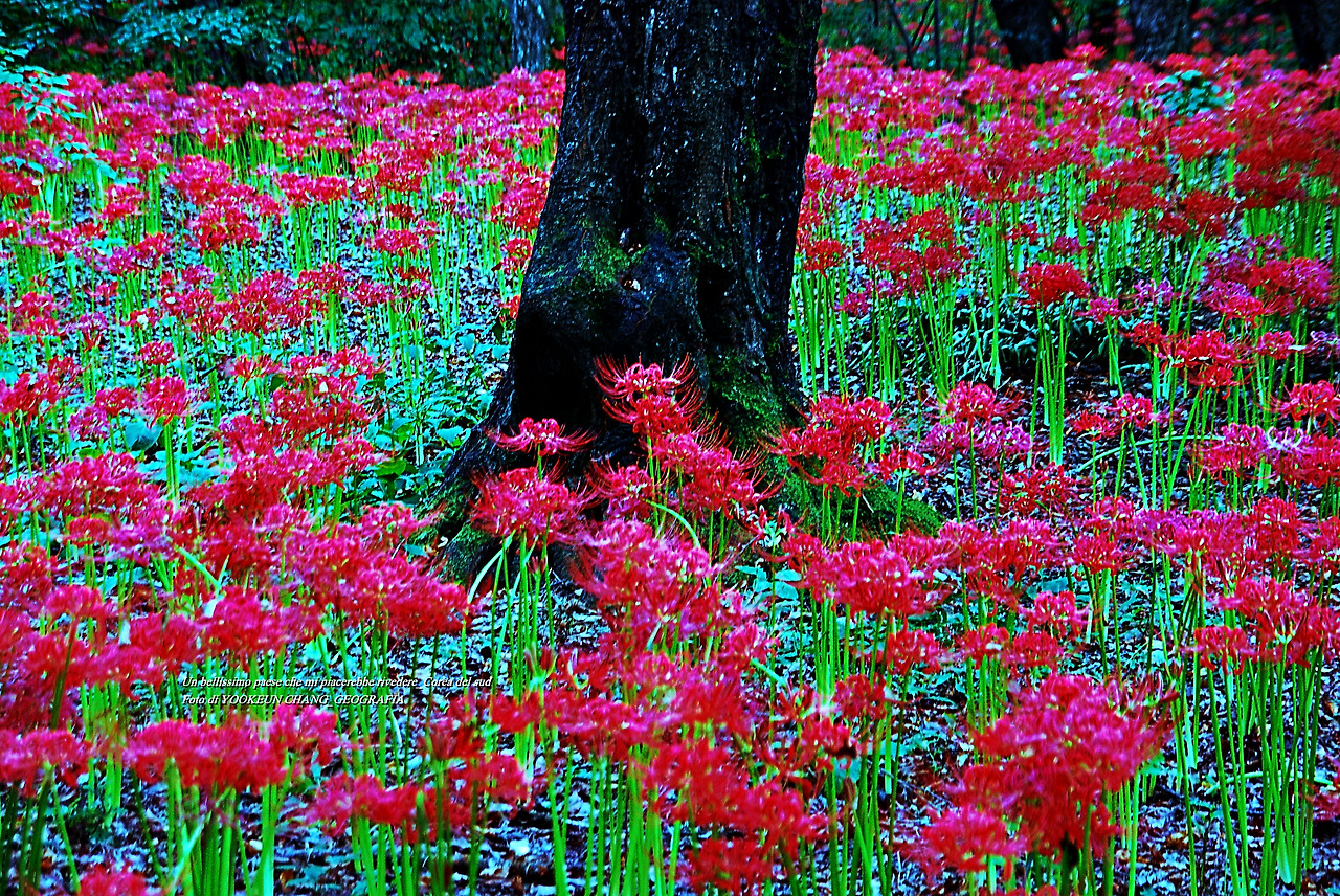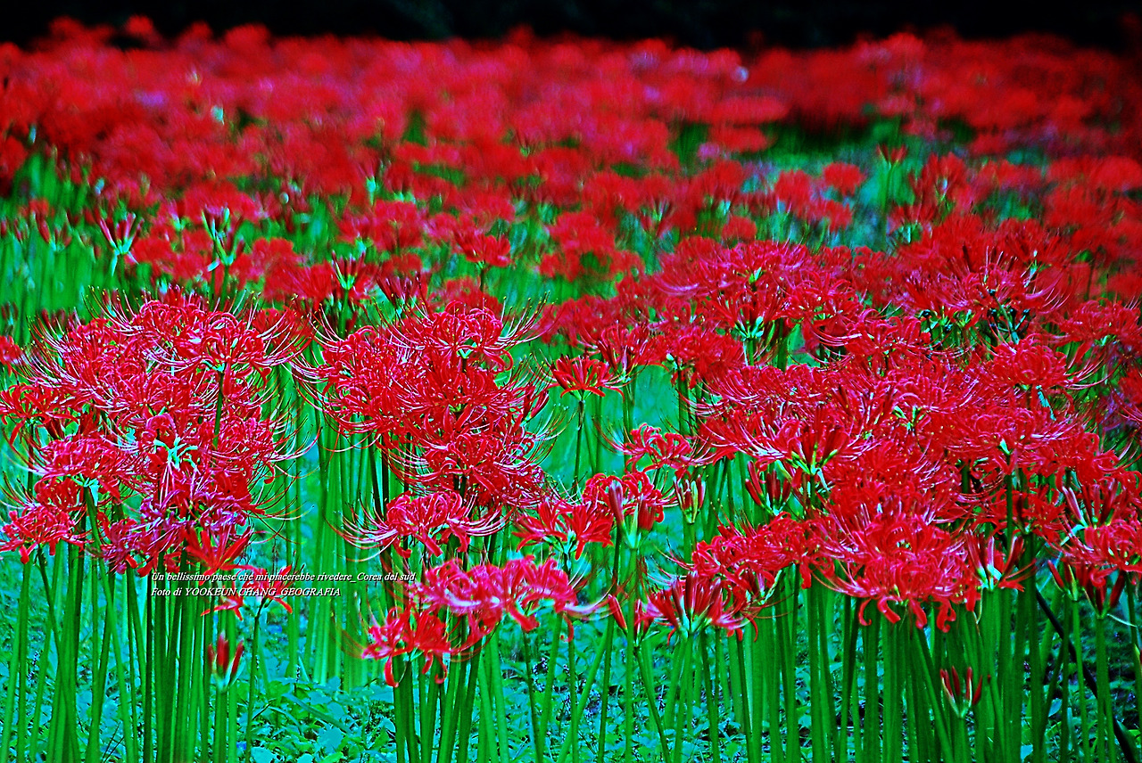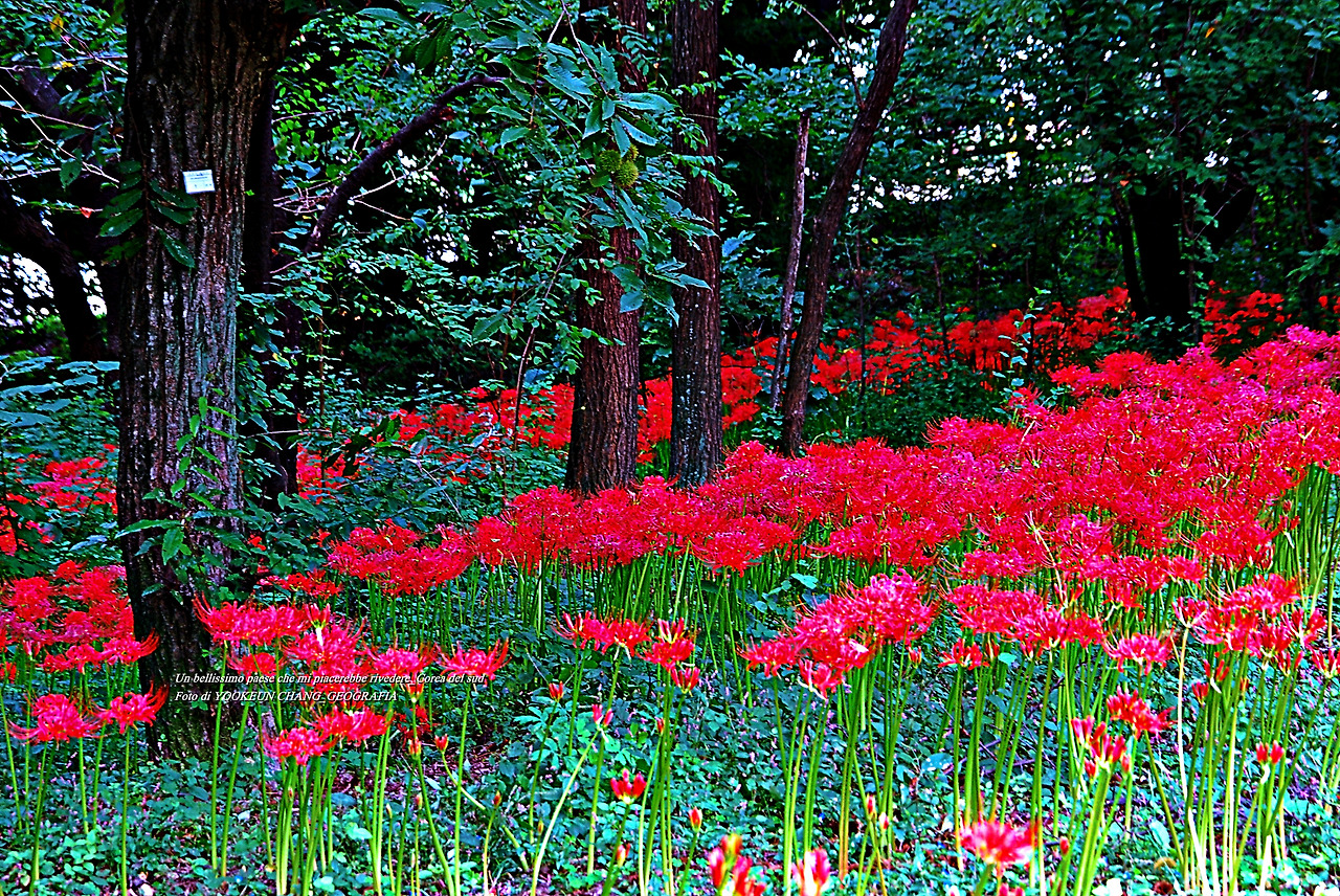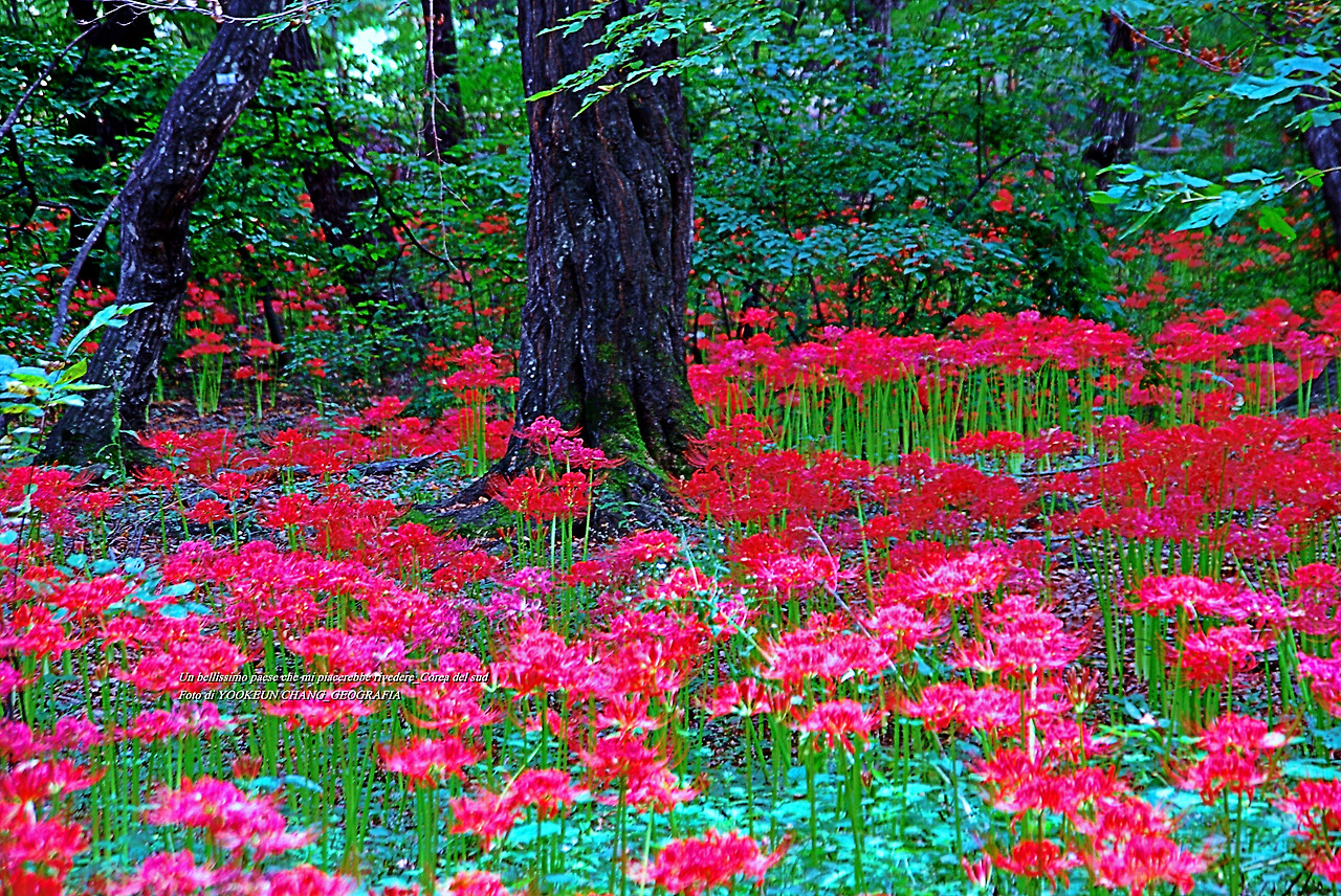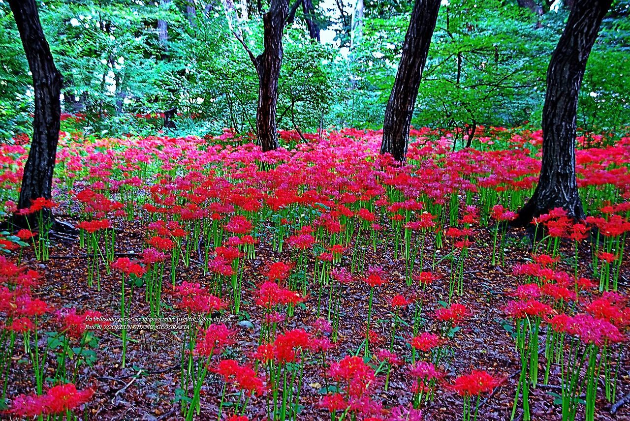 서기 2022년 6월 25일 저녁나절(현지시각) 우리가 살고 있는 이탈리아 남부 뿔리아 주 바를레타서 사진첩을 열어 핏빛 꽃무릇 무리를 보고 있다. 대한민국에 이런 풍경이 있었나 싶을 정도로 아름다운 풍경이다. 상림숲에서 잠시 떨어져 바라보면 숲 속에 이런 풍경이 있었나 싶을 정도로 평온한 모습이다.