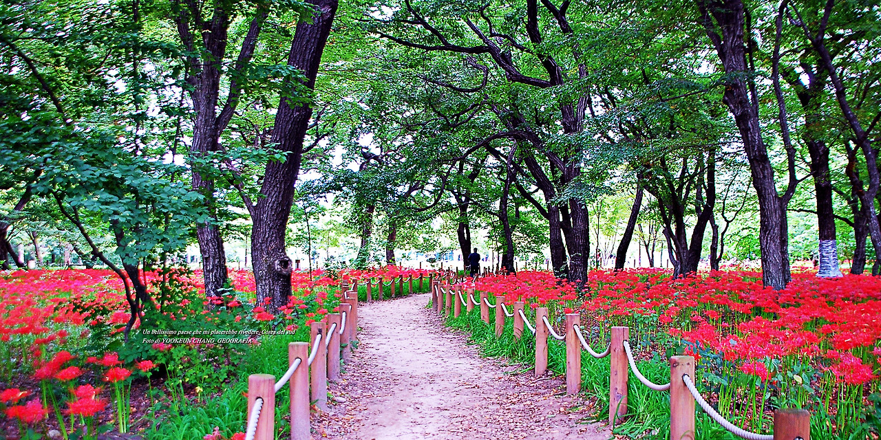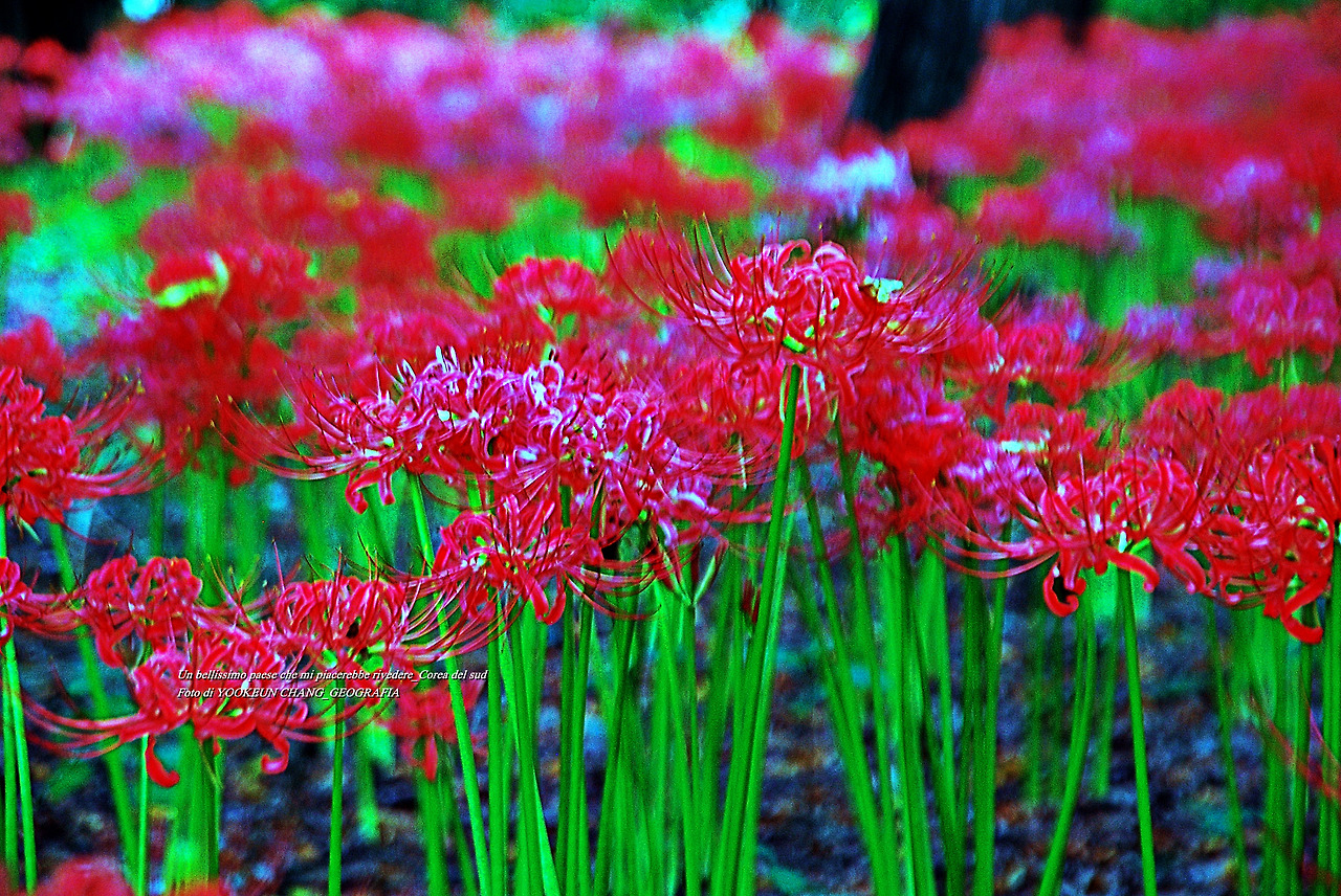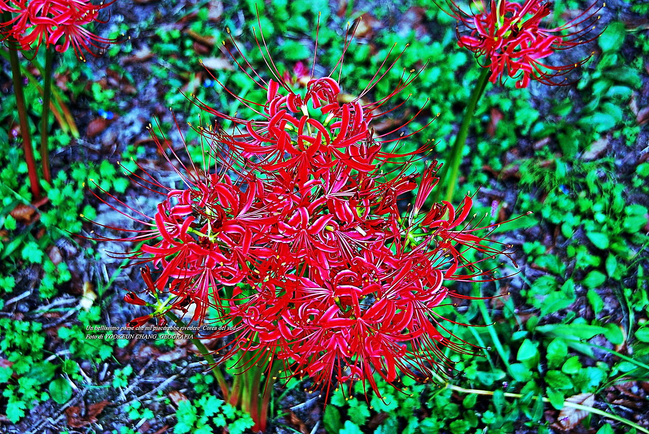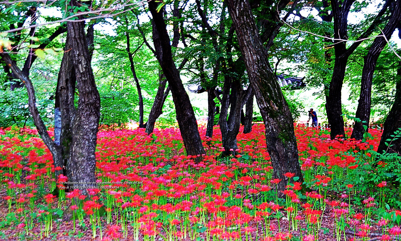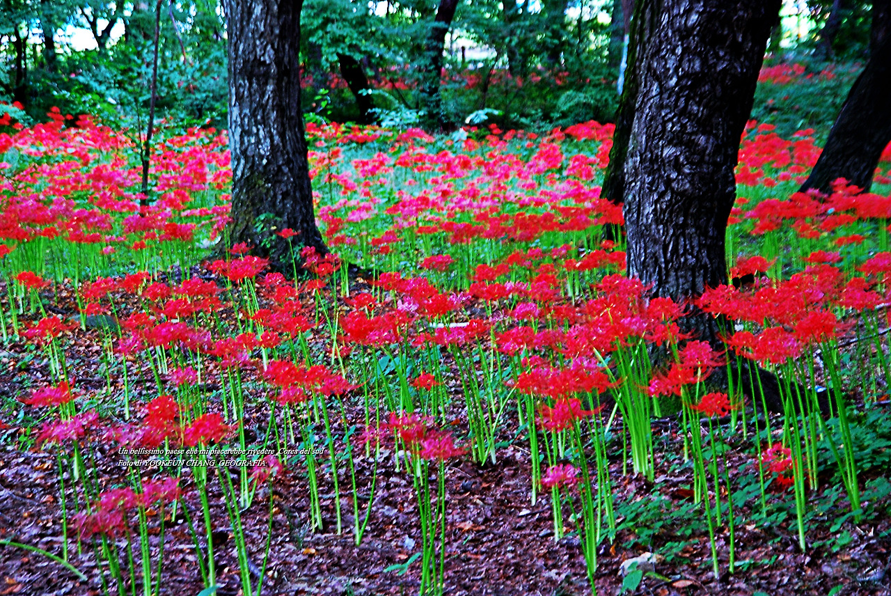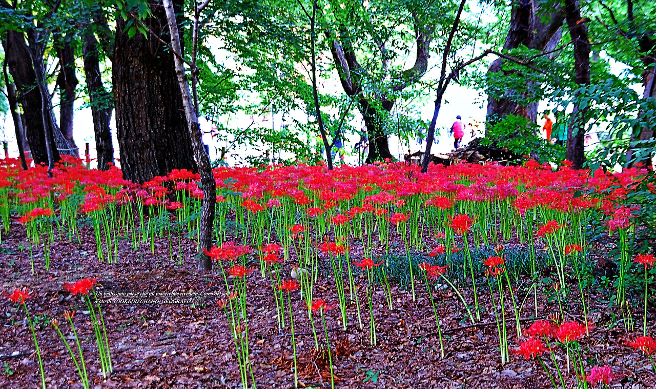 서기 2022년 6월 25일 저녁나절(현지시각) 우리가 살고 있는 이탈리아 남부 뿔리아 주 바를레타서 사진첩을 열어 핏빛 꽃무릇 무리를 보고 있다. 대한민국에 이런 풍경이 있었나 싶을 정도로 아름다운 풍경이다. 상림숲에서 잠시 떨어져 바라보면 숲 속에 이런 풍경이 있었나 싶을 정도로 평온한 모습이다.