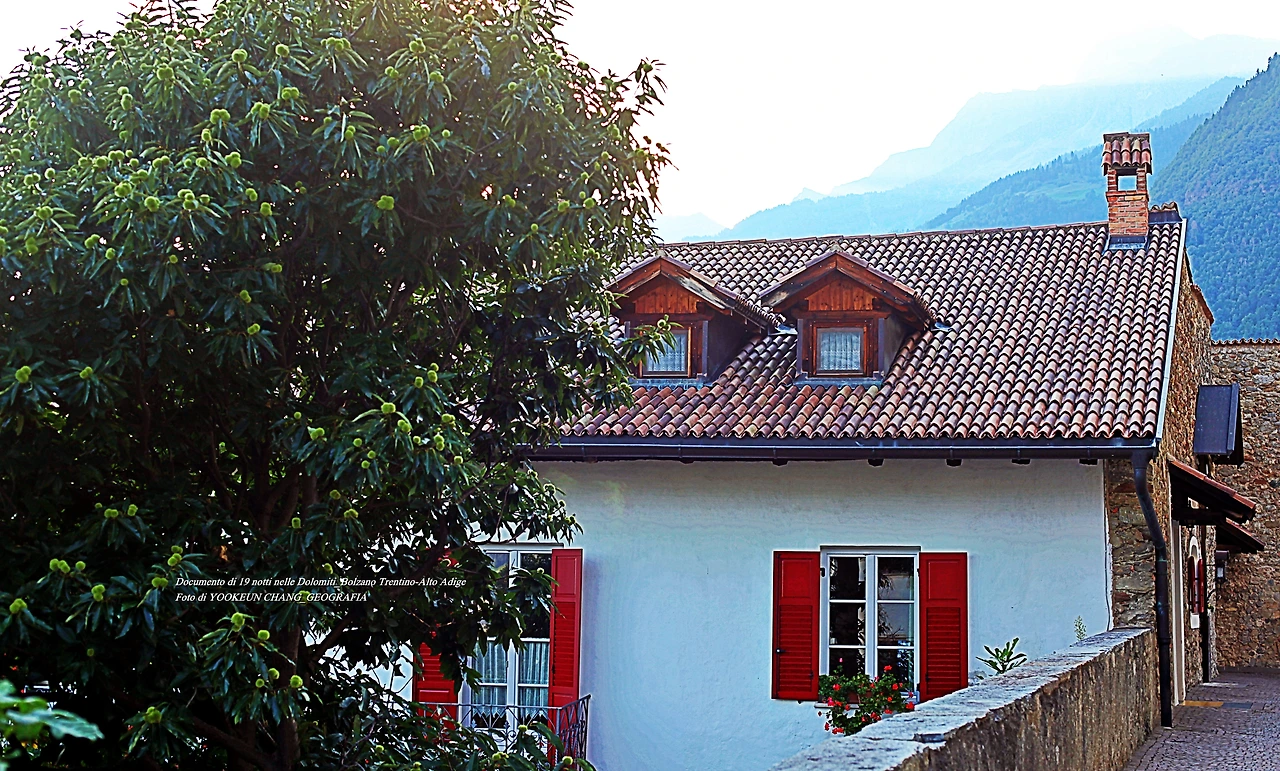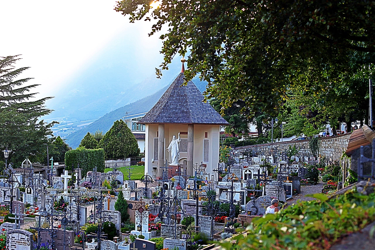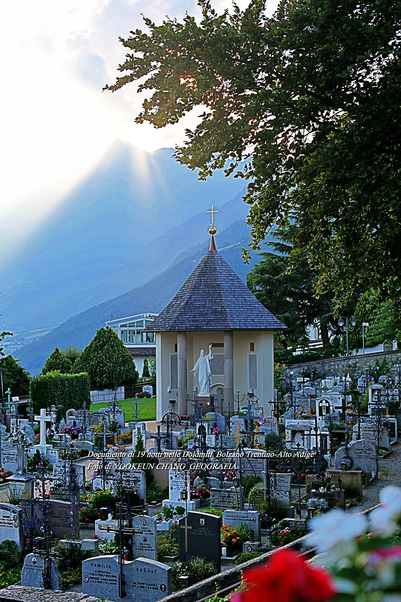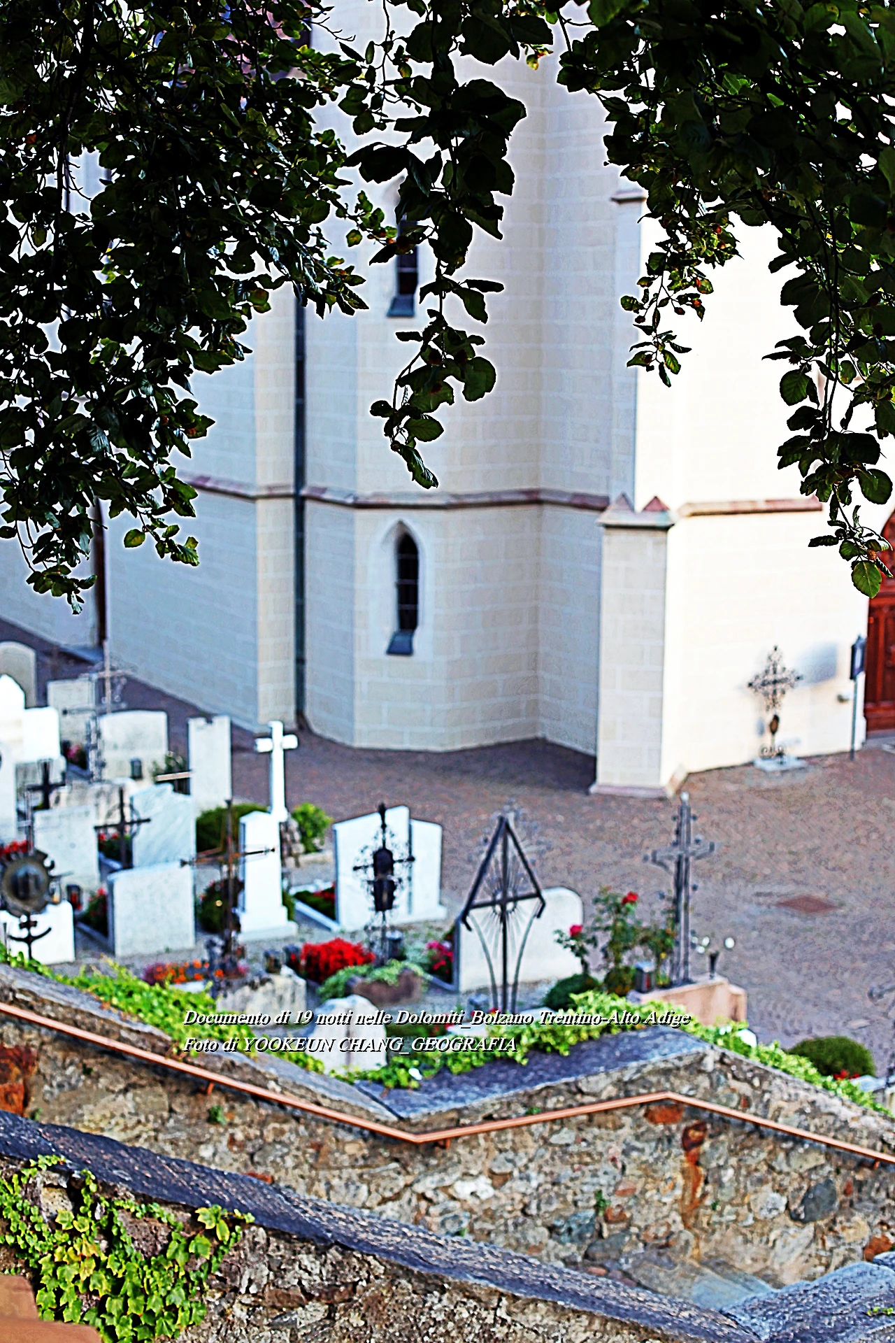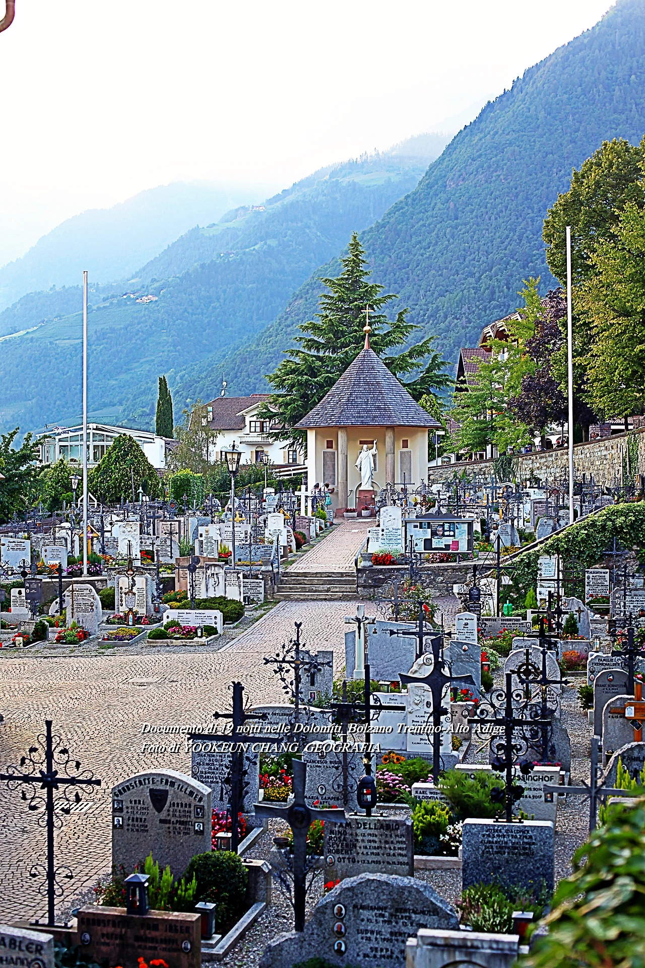그래서 노트북 앞 거실에는 바깥의 기온을 상상할 수 없을 정도로 시원한 것이다. 이런 느낌 그대로 이탈리아 북부 뜨렌띠노 알또 아디제의 메라노의 어느 산기슭으로 가 본다. 한여름이지만 냉기가 도둑처럼 스며드는 곳. 이 마을 사람들은 한 여름에도 여름을 잊고 사는 것은 물론 산 자와 죽은 자와 함께 오붓하게 아름답게 정겹게 살아가고 있었다. 그 현장으로 가 본다.
