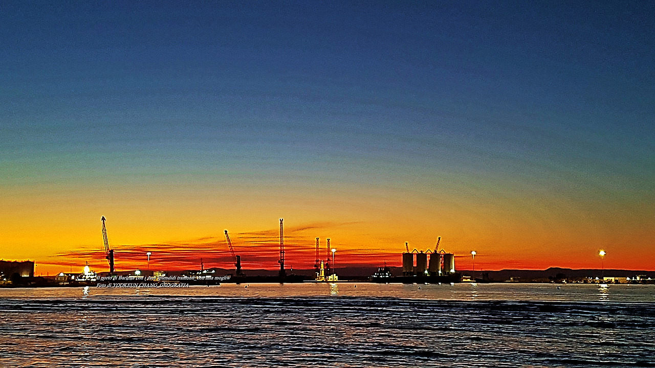 서기 2022년 7월 13일 저녁나절(현지시각), 우리가 살고 있는 이탈리아 남부 뿔리아 주 바를레타 항구는 발그레 물이 들었다. 조금 전, 해넘이가 남기고 간 여운이 아드리아해 곁을 여전히 맴돌고 있다.