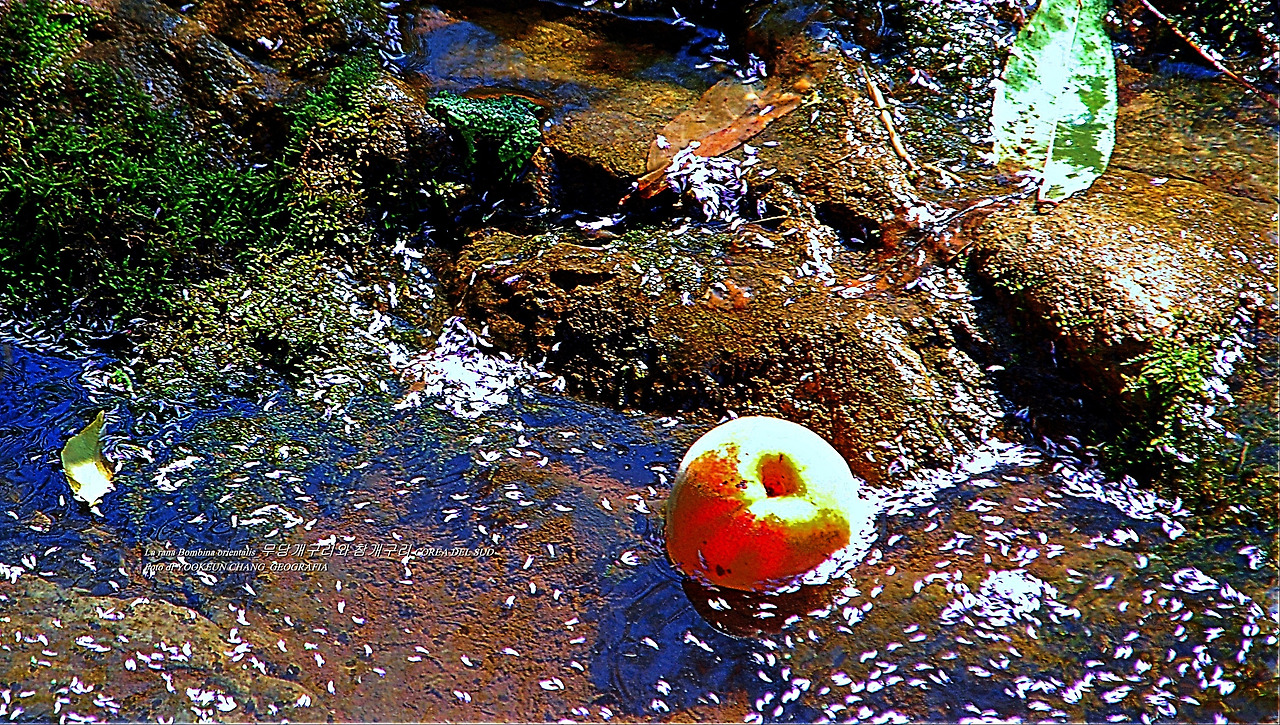 서기 2022년 7월 17일 아침나절(현지시긱), 우리가 살고 있는 이탈리아 남부 뿔리아 주 바를레타서 사진첩을 열어 강원도 영월에 살고 있는 지인의 농장 풍경을 소환했다. 여러분들에게 낯익은 풍경 속에는 요즘 보기 힘든 무당개구리의 모습이 등장한다. 지인의 과수원 곁을 흐르는 작은 도랑에 살고 있는 무당개구리.. 이름은 선무당을 닮았지만 얼마나 아름답고 착한지 모른다. 곁에서 누군가 해코지를 할 것 같은 느낌이 들면 강쥐처럼 즉각 발라당~~~ 푸른색 군복을 입은 듯한 녀석은 그 즉시 새빨간 배를 드러낸다.
