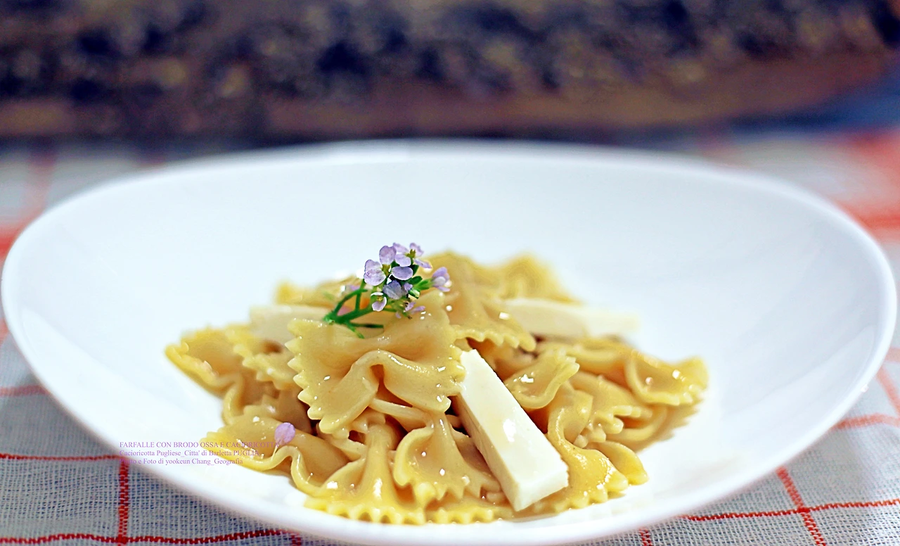 FARFALLE CON BRODO OSSA E CACIORICOTTA