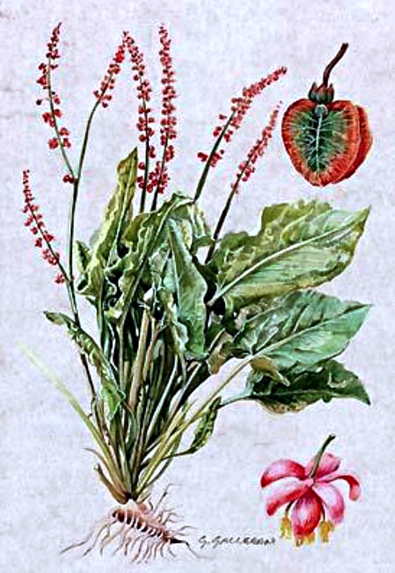 Rumex acetosa, detta anche erba brusca e Rumex acetosella o acetosa minore.