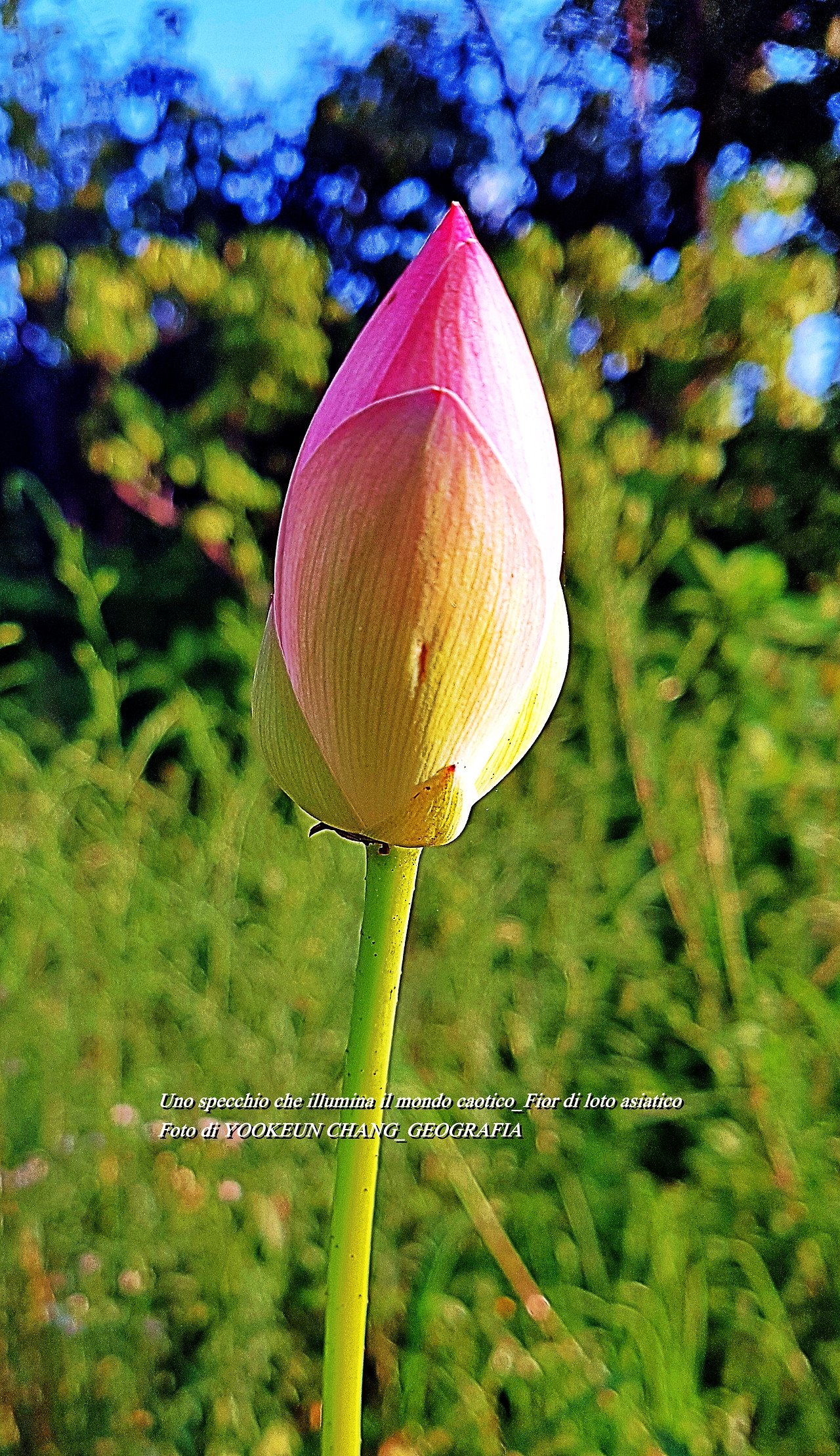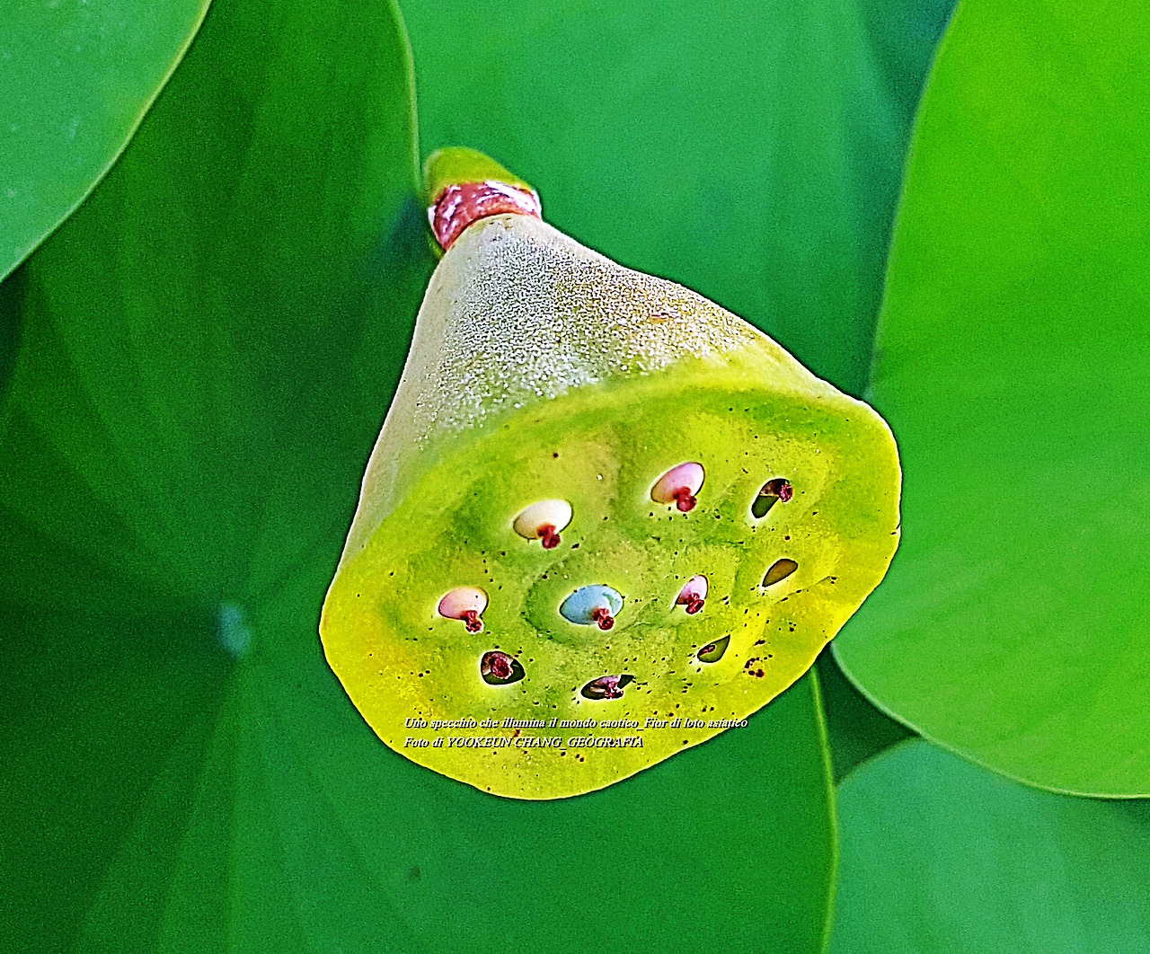 Il mondo del loto che mangia e legge con gli occhi e la mente