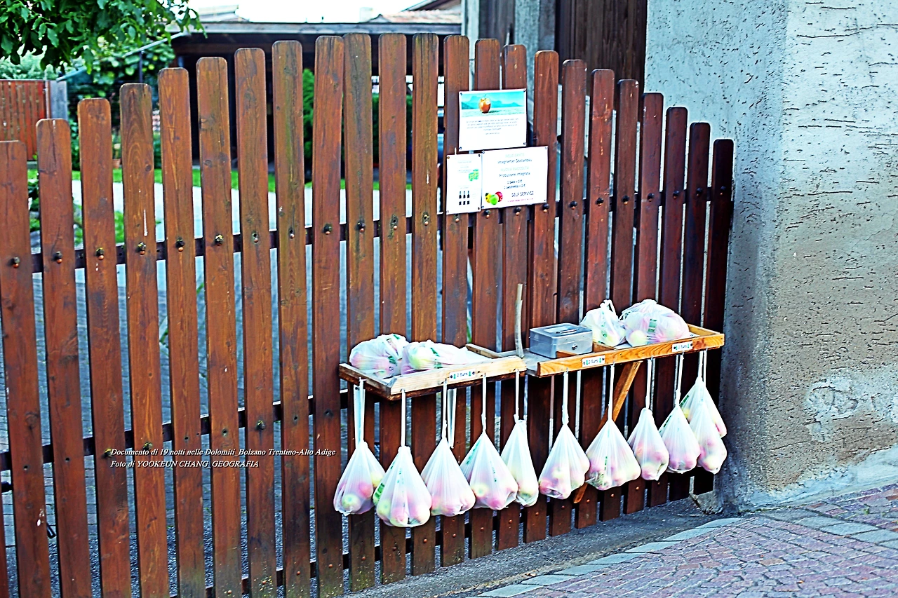 이곳의 사과 과수원은 우리나라에서 봐 왔던 과수원과 사뭇 달랐다. 재배방식이 월등하여 단 한 톨(?)의 사과조차 버리지 않을 정도로 매우 체계적으로 꼼꼼하게 시설되어 있었다. 산간지방의 우박 피해는 물론 뭇새들로부터 보호되고 있는 사과 과수원.. 메라노 전체가 사과 과수원이나 다름없었다. 이때부터 천국의 맛을 조금씩 느끼게 된 것이랄까..