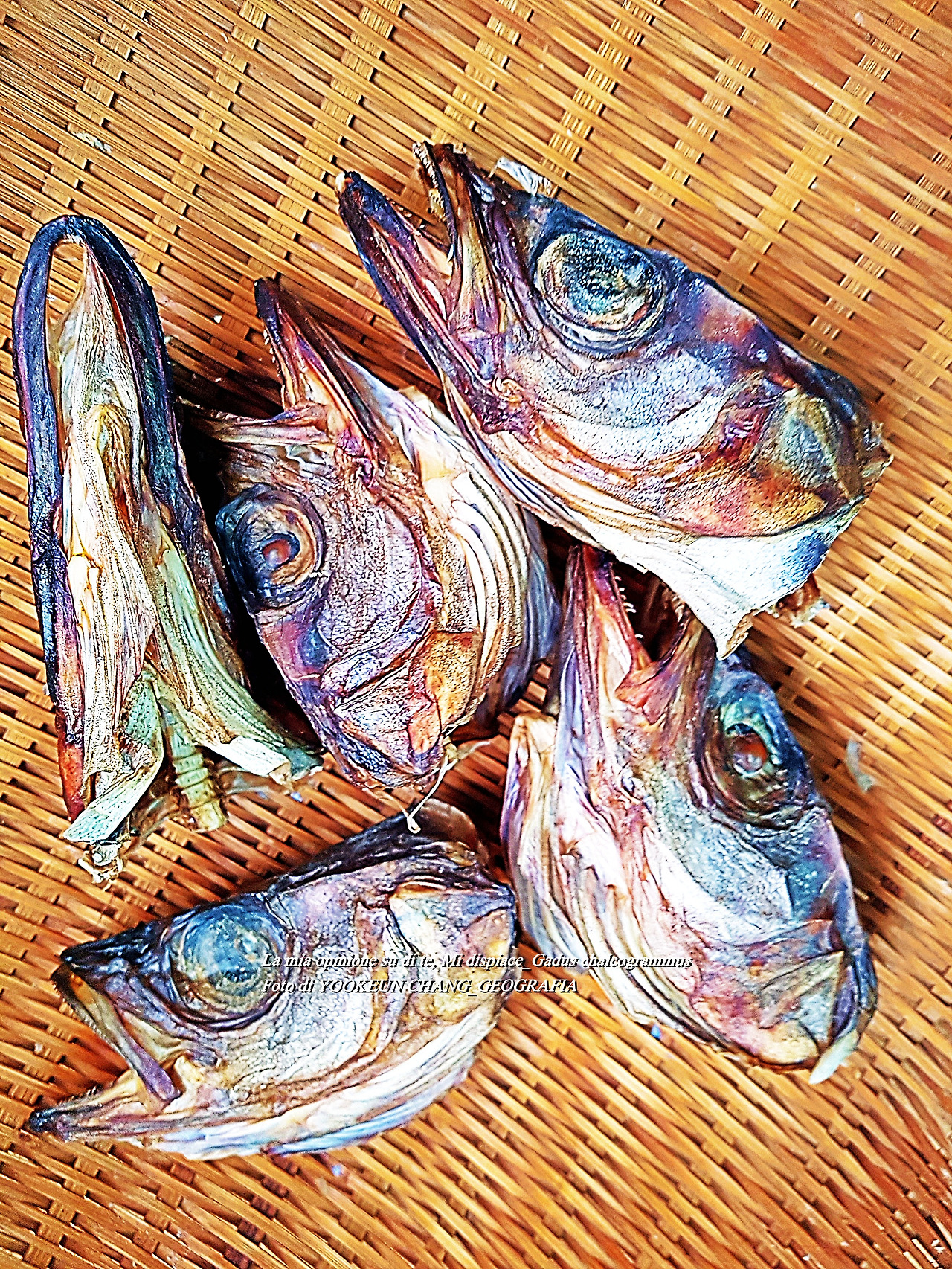 사진첩을 열어 놓고 보니 오늘자 파일에 두 풍경이 한데 기록되어 있다. 얼마 전에 쪄 먹은 명태(明太, Gadus chalcogrammus, Alaska pollock) 찜.. 그때 댕강 잘려나간 명태 대가리.. 국민생선인 명태는 조림이나 찜 등 다양한 요리로 우리 식탁에 오른다. 명태요리는 건조 방법에 따라 달라진다는 거 모르시는 분이 없을 것이다. 그렇지만 명태의 여러 명칭에 대해서 머리를 굴려보면 쉽게 대명사들이 등장하기 어려울 듯싶어서 나무위키를 열어 정리해 보니 이러하다.