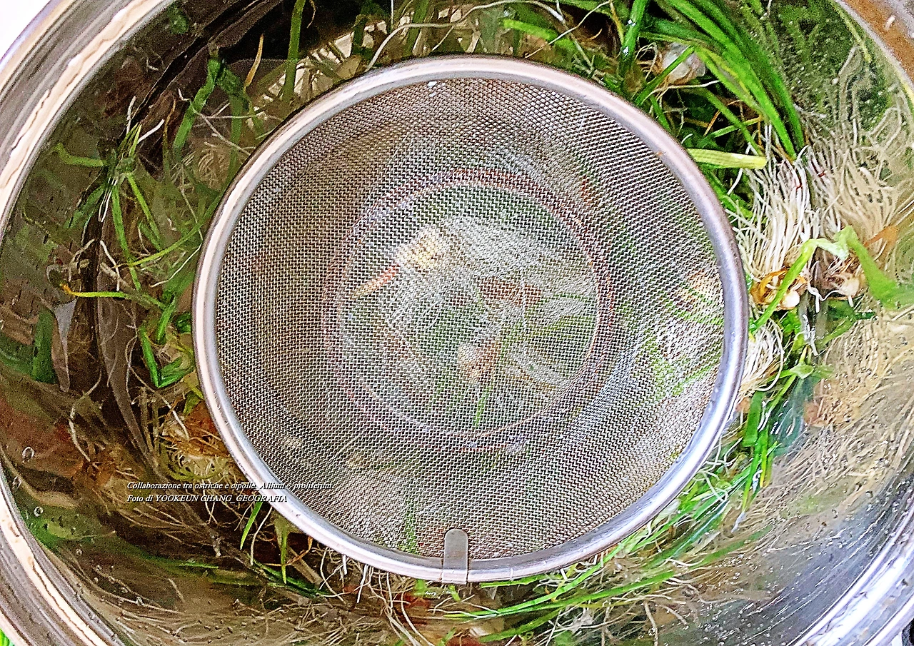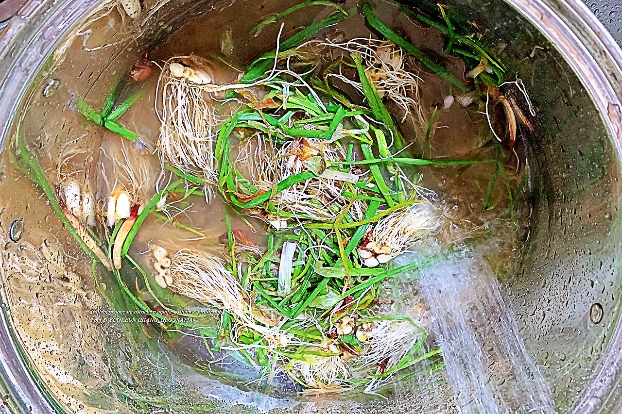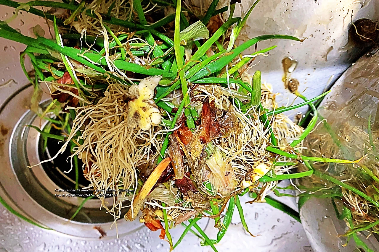 쪽파를 다듬는 과정에서 버림받은 적지 않은 녀석들이 이탈리아 요리사 손에서 씻고 씻기면서 서서히 본모습을 드러내고 있다. 녀석들이 땅속에 머리를 박고 있을 때만 해도 새하얀 뿌리들이 잘 보이지 않았지만 세상에 모습을 드러내는 순간부터 본래 모습을 드러낸다.