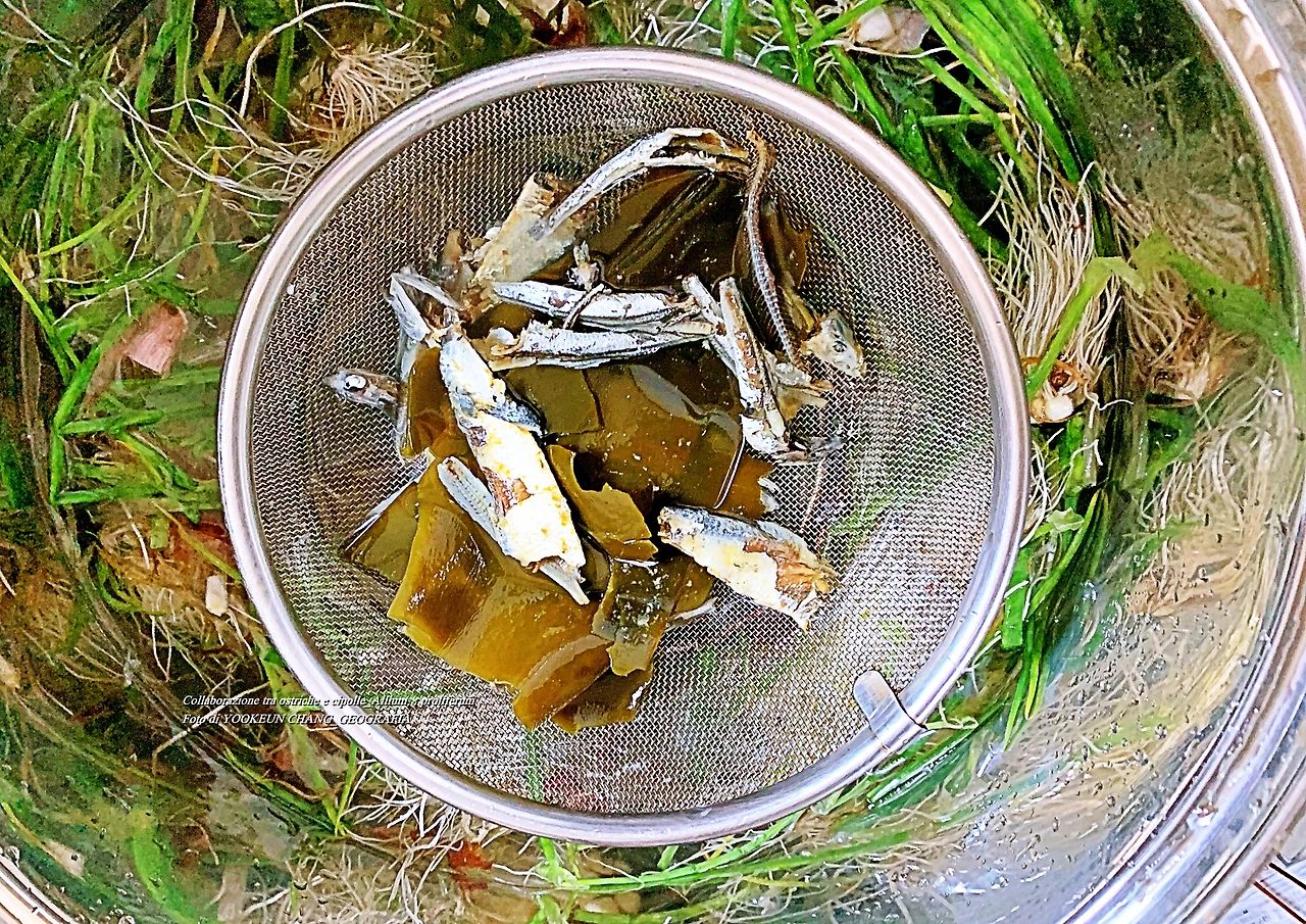 쪽파에 없는 유용한 성분을 다시마와 멸치 국물로 보충하게 된다. 다시마 국물의 맛은 글루탐산(글루타민 아미노산_Glutamine)으로 이것을 나트륨으로 중화한 게 최초로 만들어진 조미라 전한다. 글루타민은 20종류 아미노산 중 하나이며, 흔히 동물 단백질에 함유되며 인체에 가장 많은 아미노산으로 골격근의 61%를 글루타민이 차지한다.