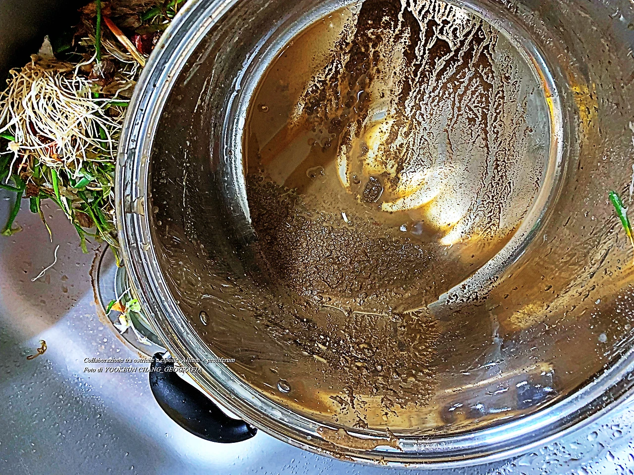 생굴쪽파전의 아이디어는 그곳으로부터 시작되었으며 이탈리아서 자나 깨나 먹고 싶었던 음식이었다. 김장을 담그시는 분들이나 맛있는 요리에 목마른 사람들은 잘 봐 두시기 바란다. 우리나라에서는 쪽파를 사용한 요리가 부지기수이다. 그 가운데 오늘 소개해 드리는 쪽파 육수는 공을 들여야 한다. 그 현장을 소개해 드린다. 개수대에 아무렇게나 버려진 듯한 쪽파 뿌리와 주인으로부터 버림받은 쪽파 이파리들..