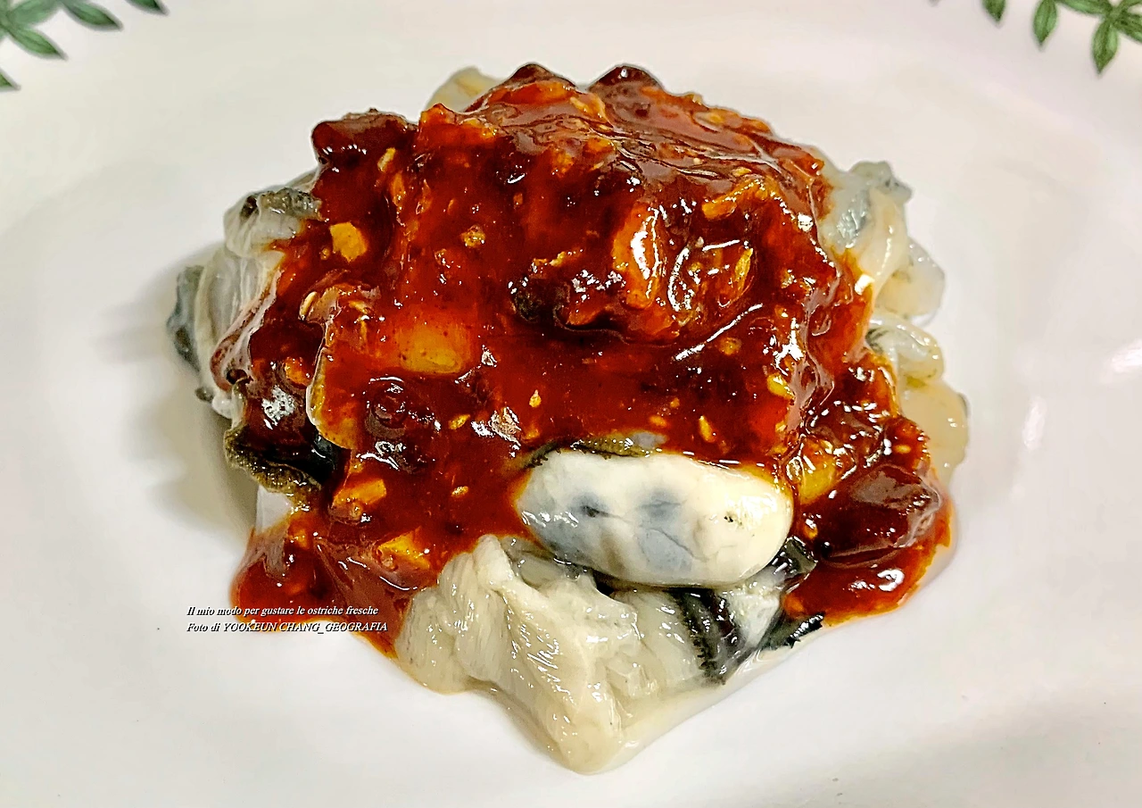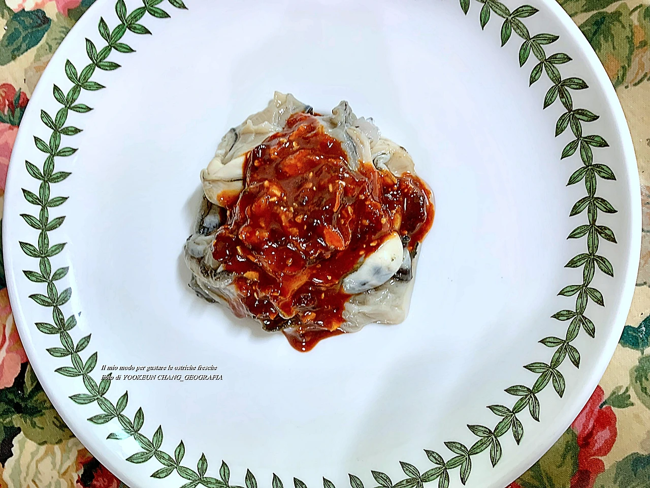 생굴에 양념을 더하는 이유는 간단하다. 습관 때문이던지 생굴에 남아있는 약간은 비릿한 맛을 제거한다는 등의 핑계가 그것이다. 그러나 초고추장이 맛을 베개 하는 것도 사실이다. 이날 즉석에서 만든 초고추장 만들기는 매우 간단하다. 죽염고추장 큰 한 술에 3배 식초 두 큰 술 그리고 찧은 마늘 작은 5조각에 참기름 한 티스푼 그리고 깨소금 적당량을 흩뿌리고 삭삭삭 잘 저어주며 섞었다. 이제 먹어보나 마나 둘이 먹다가 둘 다 죽어도 모를 해산물왕국 대한민국의 생굴 요리.. 여기에 무슨 식재료가 더 필요할까..
