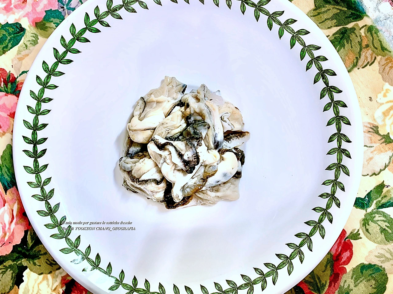 이제부터 요리를 맛볼 차례.. 접시 위에 생굴 몇 점을 올리고 눈팅을 하며 한 알씩 입으로 가져간다.