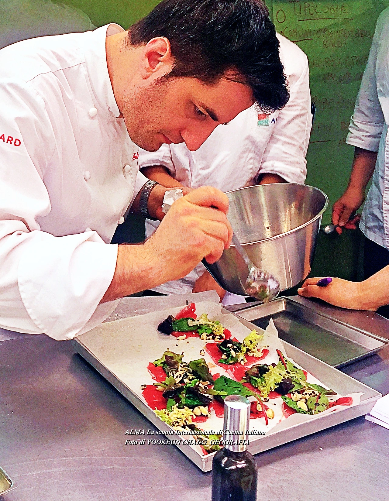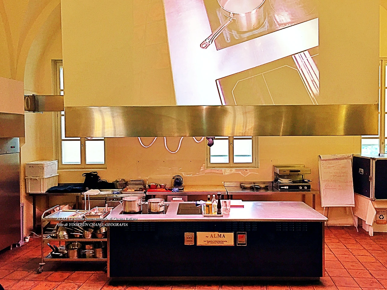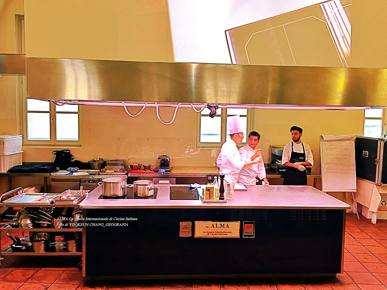눈이 부시다. 티끌 한 톨 보이지 않는 깨끗하게 잘 단장된 꾸치나(CUCINA, 주방).. 이곳은 글쓴이가 졸업한 요리학교(ALMA)의 실습실이자 특강이 열리는 곳이다. 요리학교의 특강은 이탈리아 전역의 유명 리스또란떼 셰프가 초청된다. 이날(편의상) 초청된 셰프는 펠리체 스가르라(FELICE SGARRA).. 당신이 운영하는 홈피를 열어보면 이탈리아 현대 요리 버전의 일면을 보게 된다. 포스트에 등재된 자료사진은 학교 당국으로부터 승인을 받은 귀한 자료이다. 이날 연출된 요리를 잠시 들여다볼까..
