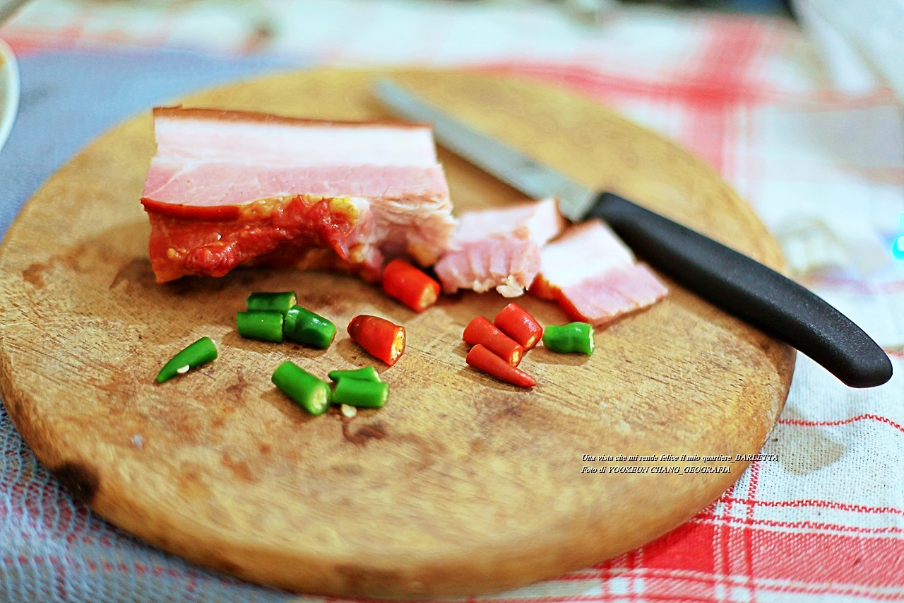 그다음 나의 부활을 위해 훈제된 삼겹살 덩어리를 잘라 뷔노 비앙꼬를 곁들였다. 흠.. 쥑인다. 고기 한 점에 탱글탱글한 청양고추를 갈치속젓으로 만든 쌈장에 콕 찍어 입안으로 가져가는 순간 부활의 노래가 천국으로 울려 퍼진다. 기막힌 조합이다.
