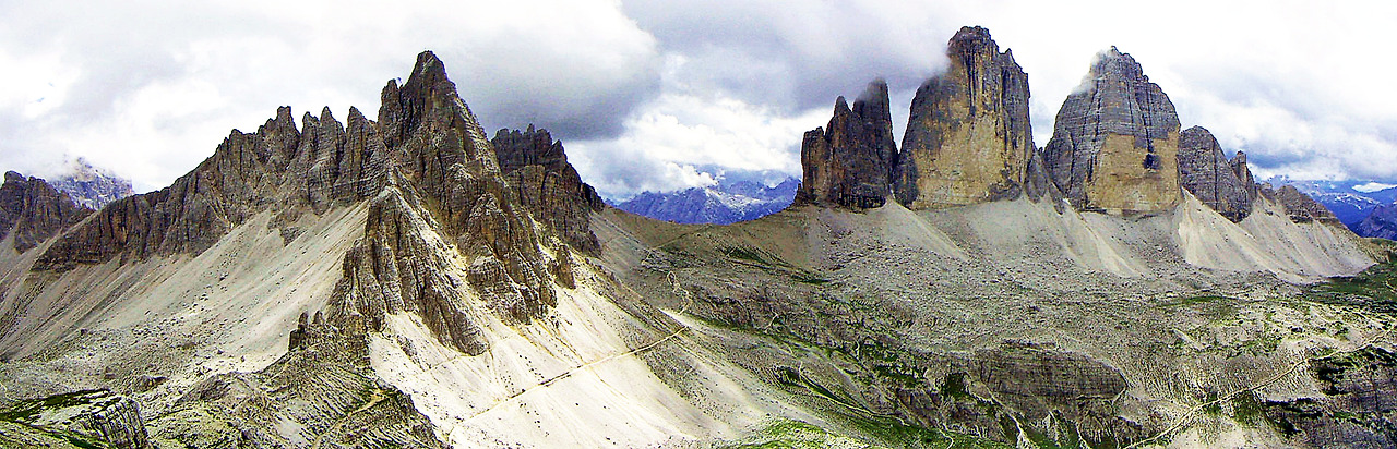 위 자료사진은 위키피디아에 기록돤 뜨레 치메 디 라비레도의 파노라마 전경이다. 포스트에 등재된 여행기록 사진은 맨 우측 중간의 언덕을 지나고 있다.