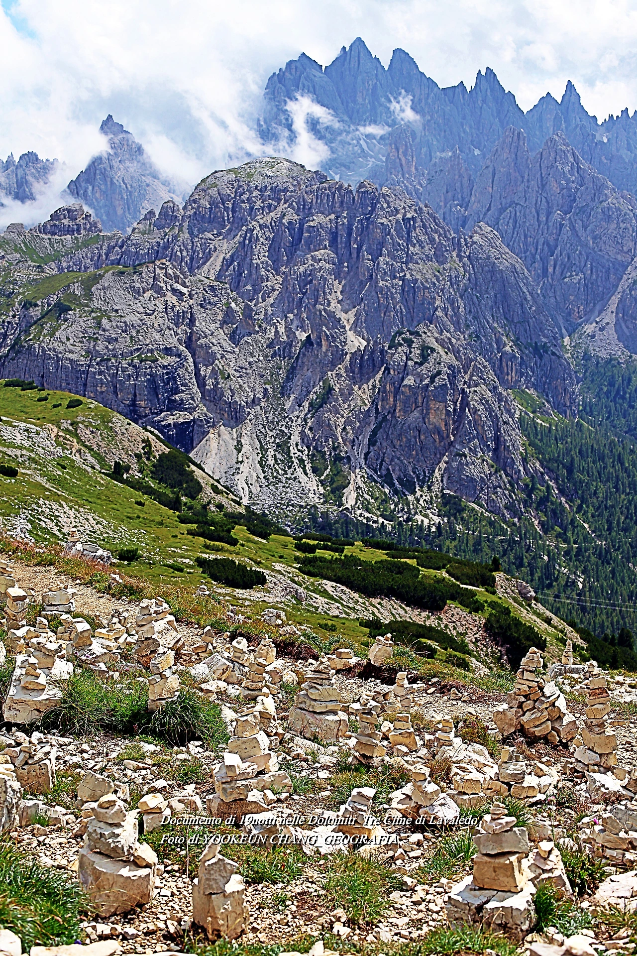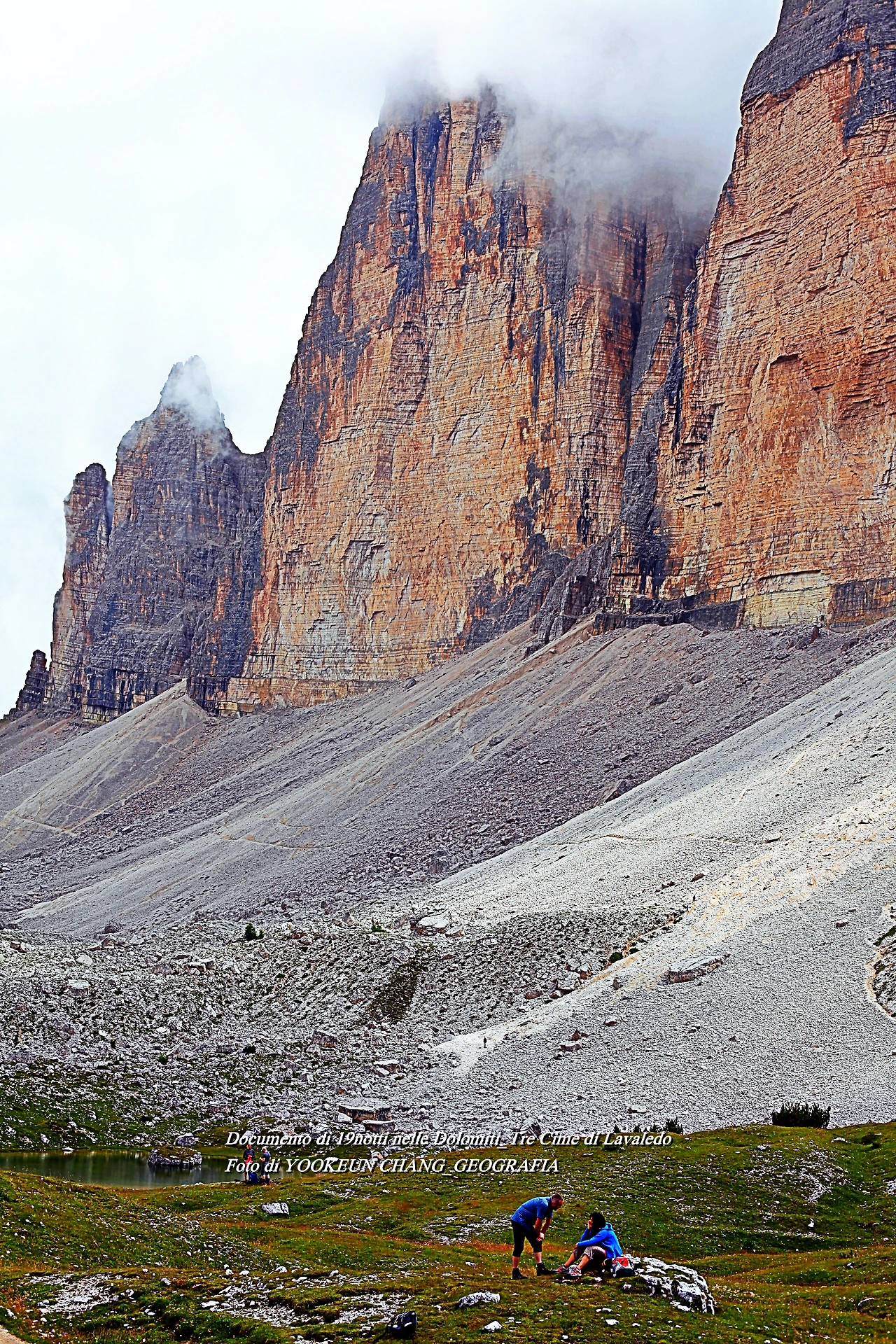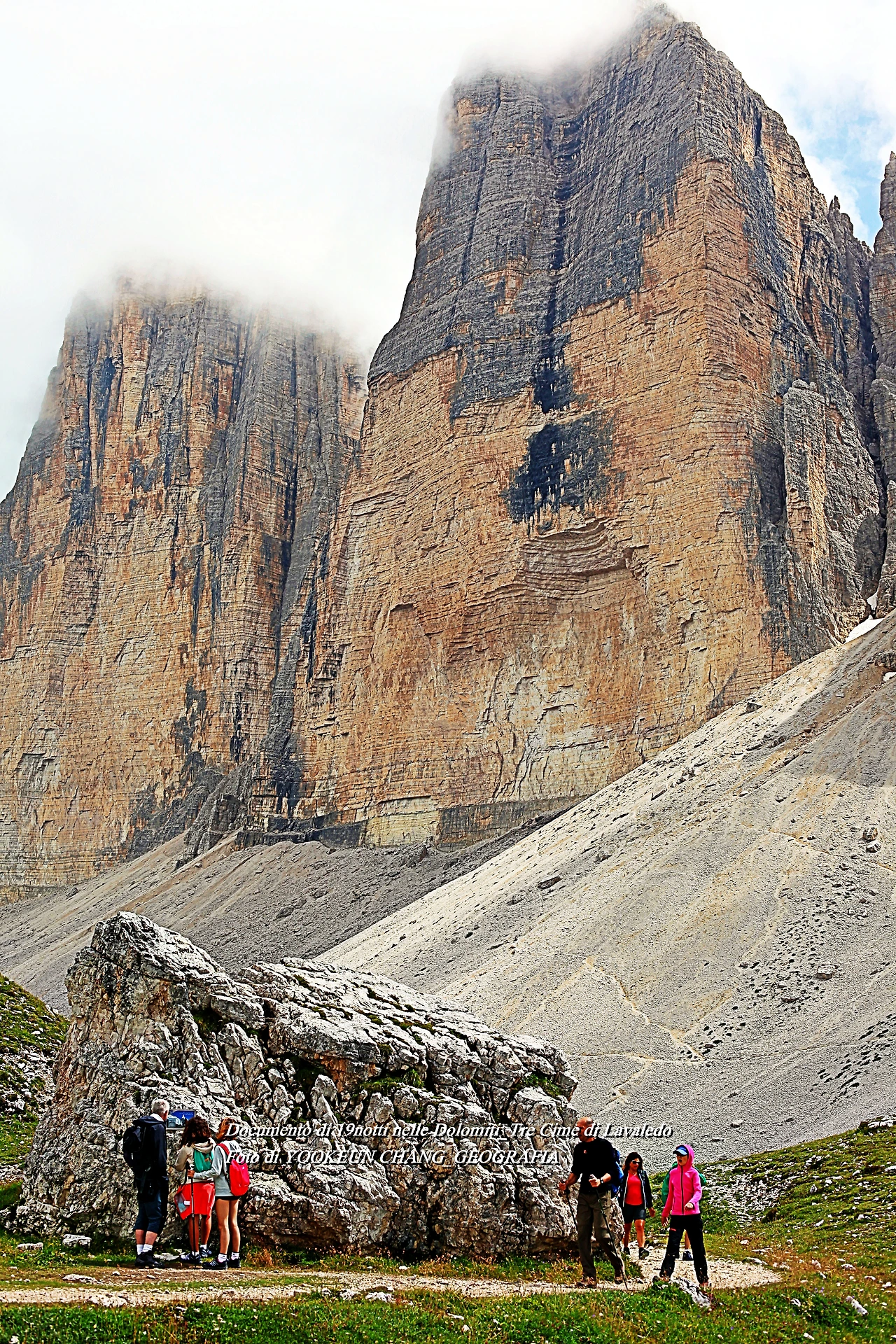 암봉은 묵묵히 제자리를 지키고 있었다. 그 세월이 얼마만큼 되는지 아는 사람은 흔치 않다. 알려고도 하지 않는다. 관련 연재 글에 돌로미티 산군이 형성된 시기는 대략 7천만 년 전으로 거슬로 올라간다고 말한 바 있다. 우리 인간이 계수할 수 없는 까마득히 먼 시간부터 지금까지 제자리를 지키고 있는 것이다. 사람들이 세 암봉 아래서 감동에 빠져들거나 작아지는 것도 그 때문 아닌가..