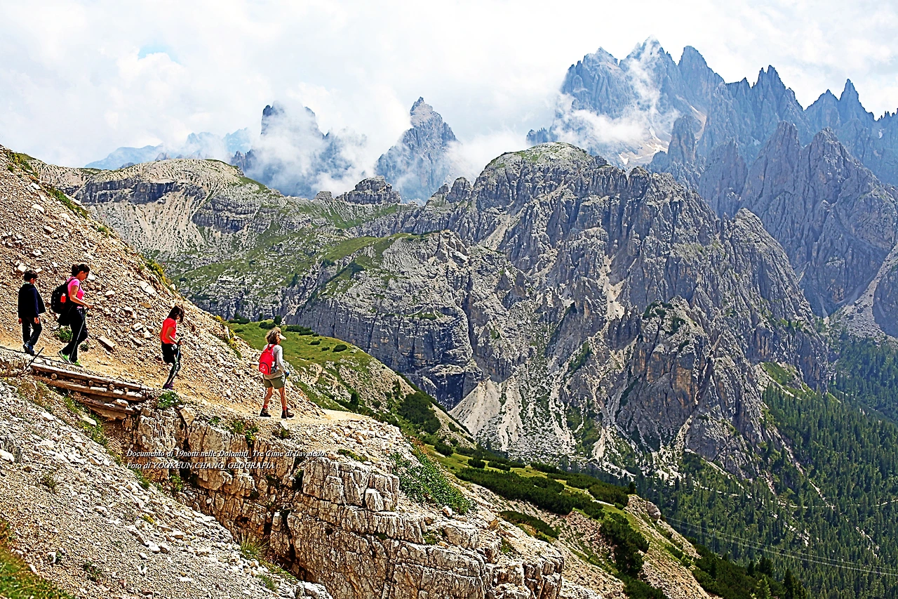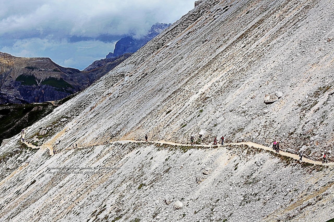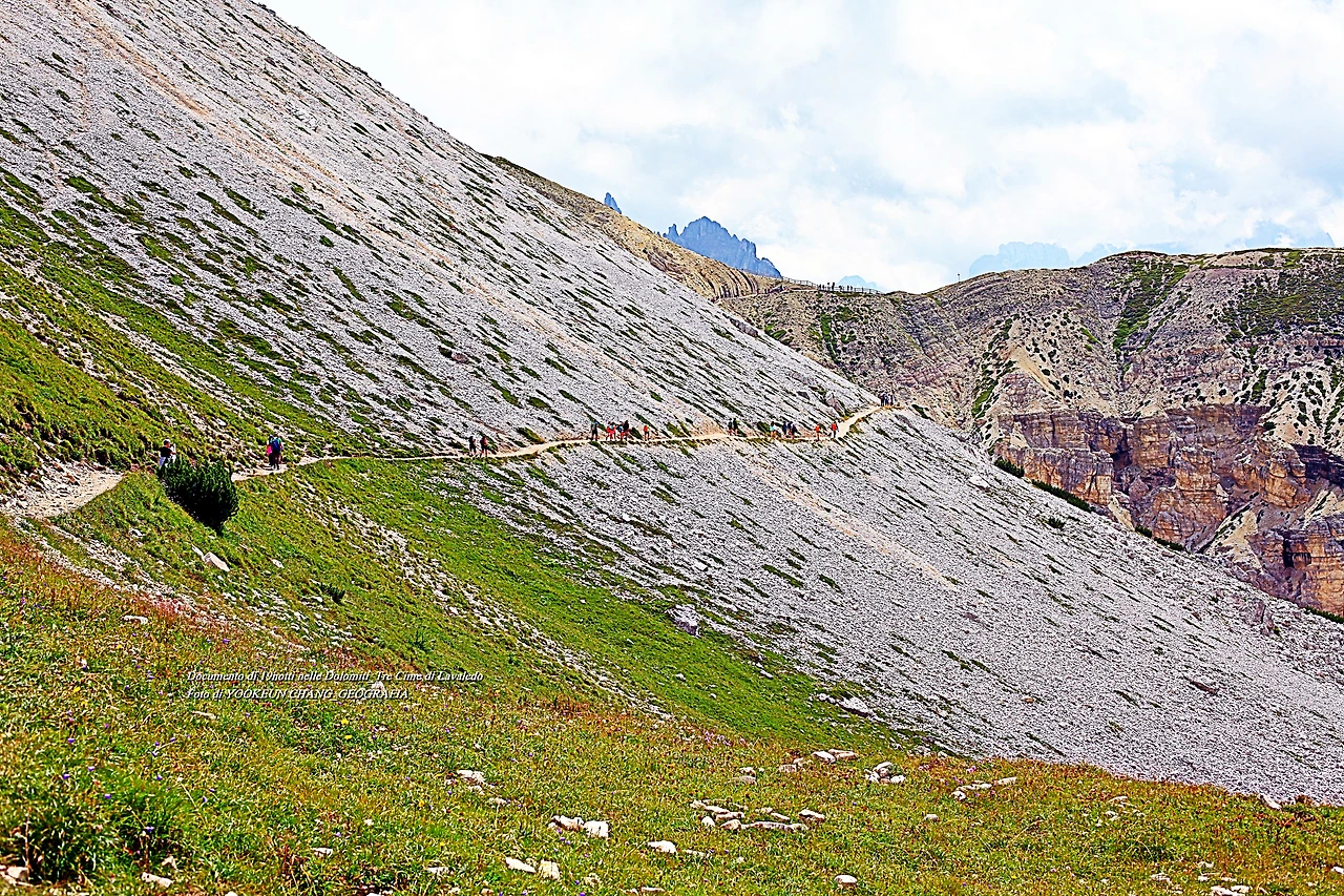 암봉은 묵묵히 제자리를 지키고 있었다. 그 세월이 얼마만큼 되는지 아는 사람은 흔치 않다. 알려고도 하지 않는다. 관련 연재 글에 돌로미티 산군이 형성된 시기는 대략 7천만 년 전으로 거슬로 올라간다고 말한 바 있다. 우리 인간이 계수할 수 없는 까마득히 먼 시간부터 지금까지 제자리를 지키고 있는 것이다. 사람들이 세 암봉 아래서 감동에 빠져들거나 작아지는 것도 그 때문 아닌가..