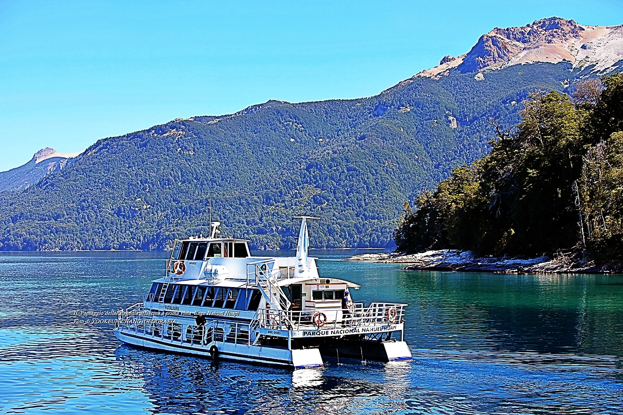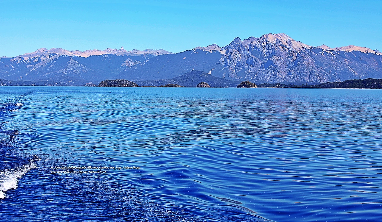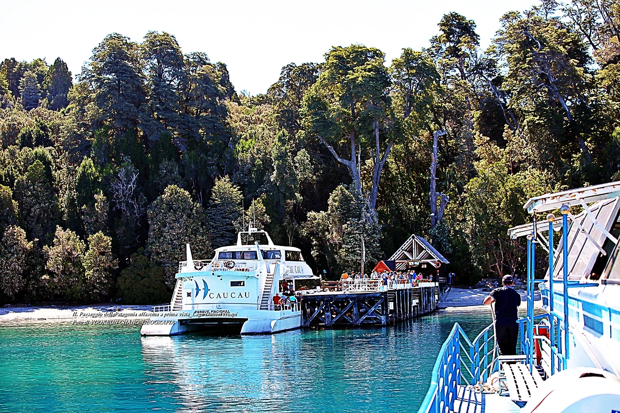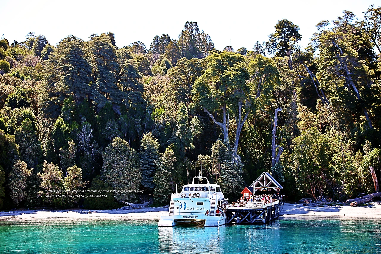 나우엘 우아피 호수의 빅토리아 섬(La Isla Victoria si trova nel lago Nahuel Huapi)에서 아라야네스 숲 공원으로 항해를 시작했다. 날씨가 좋아 호수빛이 환상적이다.