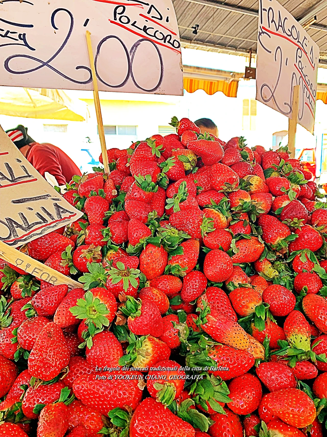 서기 2023년 오전 컴을 열고 사진첩에 등장한 먹음직스러운 딸기를 만나고 있다. 관련 포스트에서 여러 차례 우리가 살고 있는 이탈리아 남부 뿔리아 주 바를레타 재래시장의 면모를 살펴봤다. 이탈리아에 살면서 채소와 과일 등 식재료가 턱 없이 싸다는 것이다. 사람들은 이런 걸 '미친 가성비'라고 말할 정도이다. 우리 돈 1만 원을 손에 쥐고 시장을 한 바퀴 돌면 소수레가 무거워 끌지 못할 정도이다. 식재료 종류불문 대략 1킬로그램에 1유로에서 1.5유로만 지불하면 대략 7킬로그램에 해당하는 양의 징바구니를 채우게 되는 것이다. 만약 우리 주부들이 우리 동네에 납시면 한국으로 돌아가고 싶은 생각이 싹 사라지지 않을까..