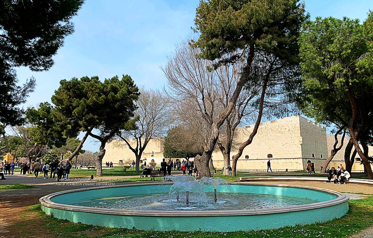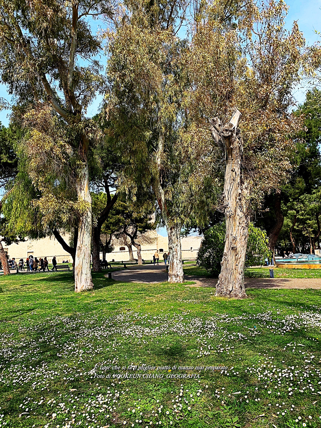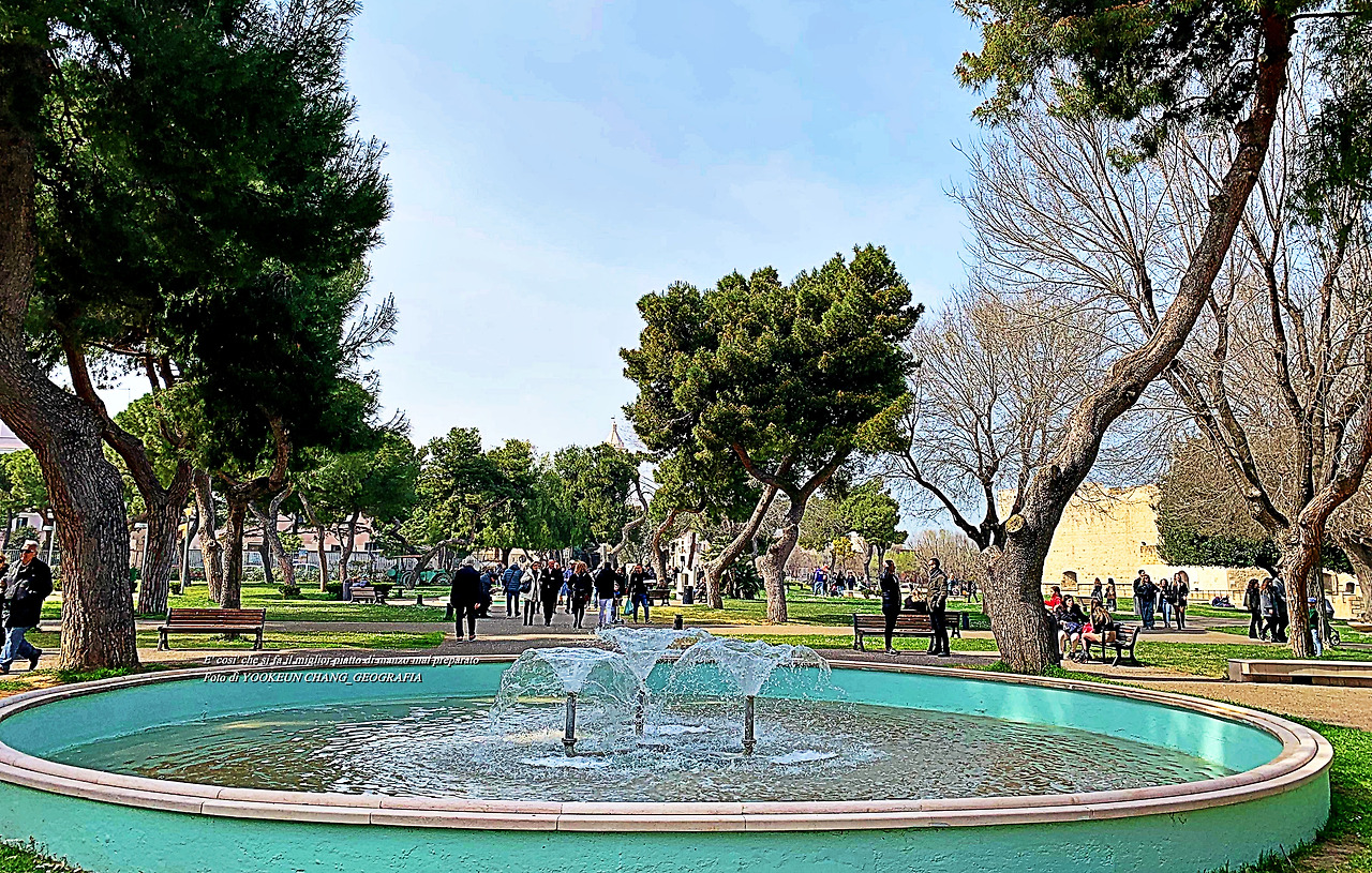 서기 2023년 3월 19일 정오경, 우리가 살고 있는 이탈리아 남부 뿔리아 주 바를레타서 바닷가 산책을 나서다가 잠시 공원에 들렀다. 공원은 바닷가로 나가는 길목에 위치해 있고 집 앞에 있어서 하니와 자주 들렀던 곳이다. 3월 말로 향하는 절기는 봄의 향기를 잔뜩 품고 있었으며 시민들이 모처럼 활기차게 붐볐다. 남녀노소 모두 정장 차림으로 봄나들이를 나온 모습이 패션왕국답다.