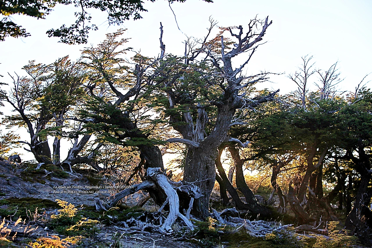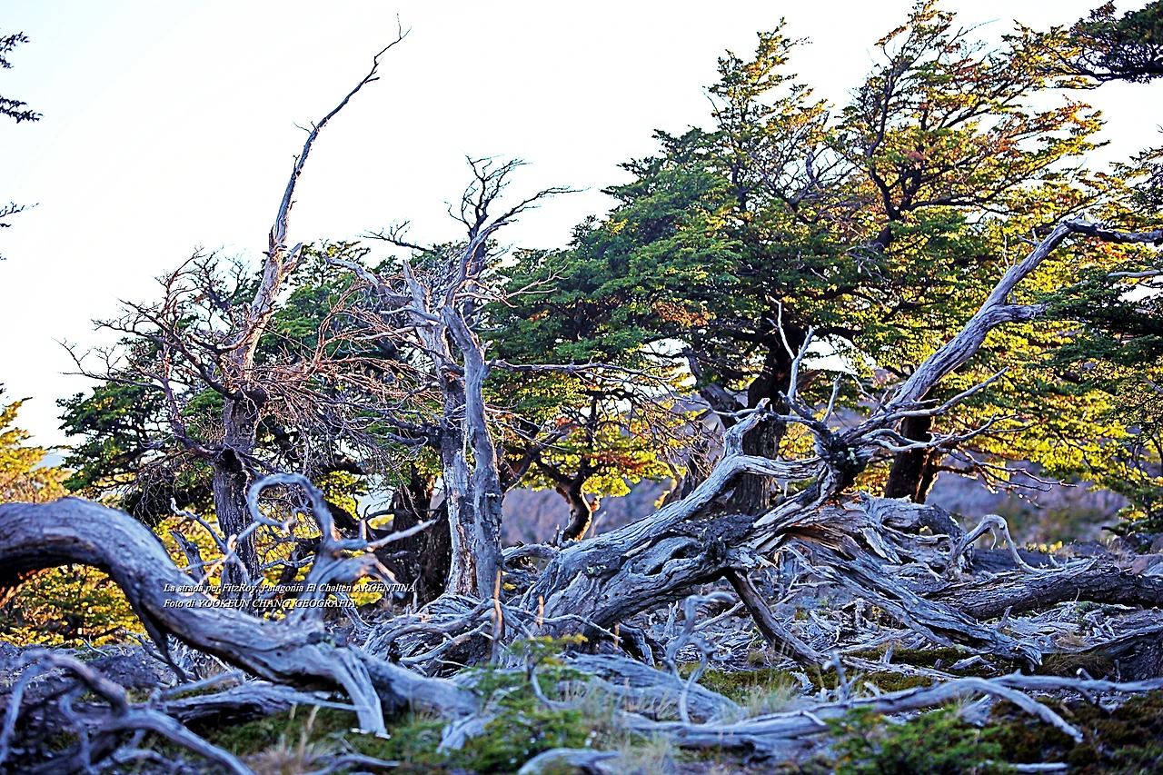 하니와 함께 이른 아침 해님이 돋기도 전에 아르헨티나의 파타고니아 지역의 명소 엘 찰텐에서 명산 피츠로이를 찾아가는 길에 만난 풍경들은 예사롭지 않았다. 바람의 땅에서 자란 고목들이 명을 다하며 길 옆에 쓰러져 있는 모습이 안쓰럽다 못해 너무 아름다운 것이다.