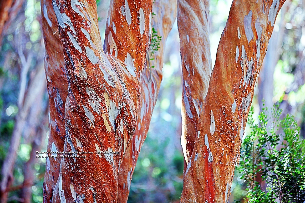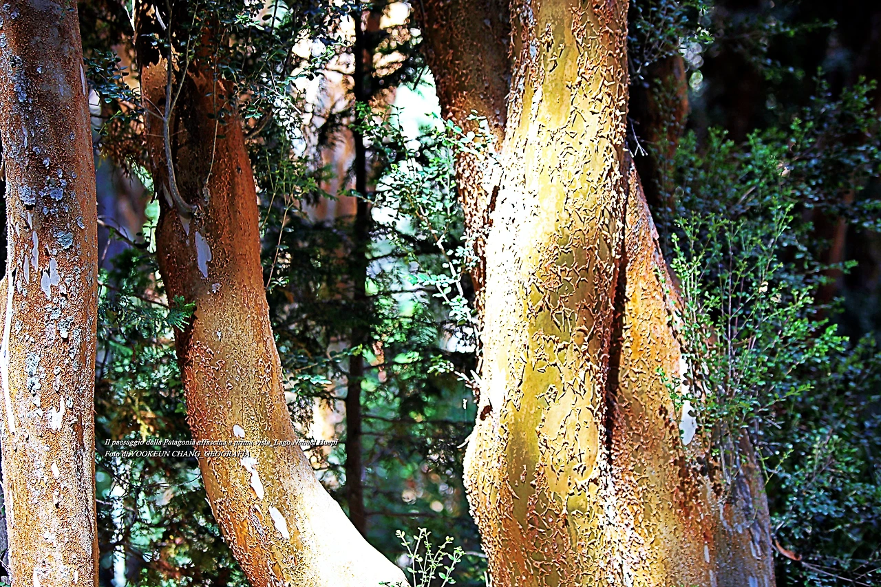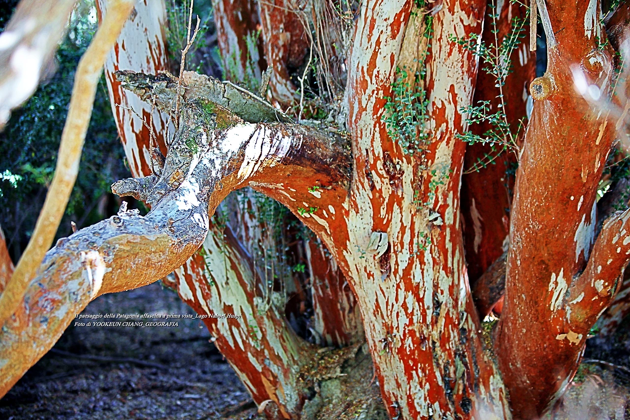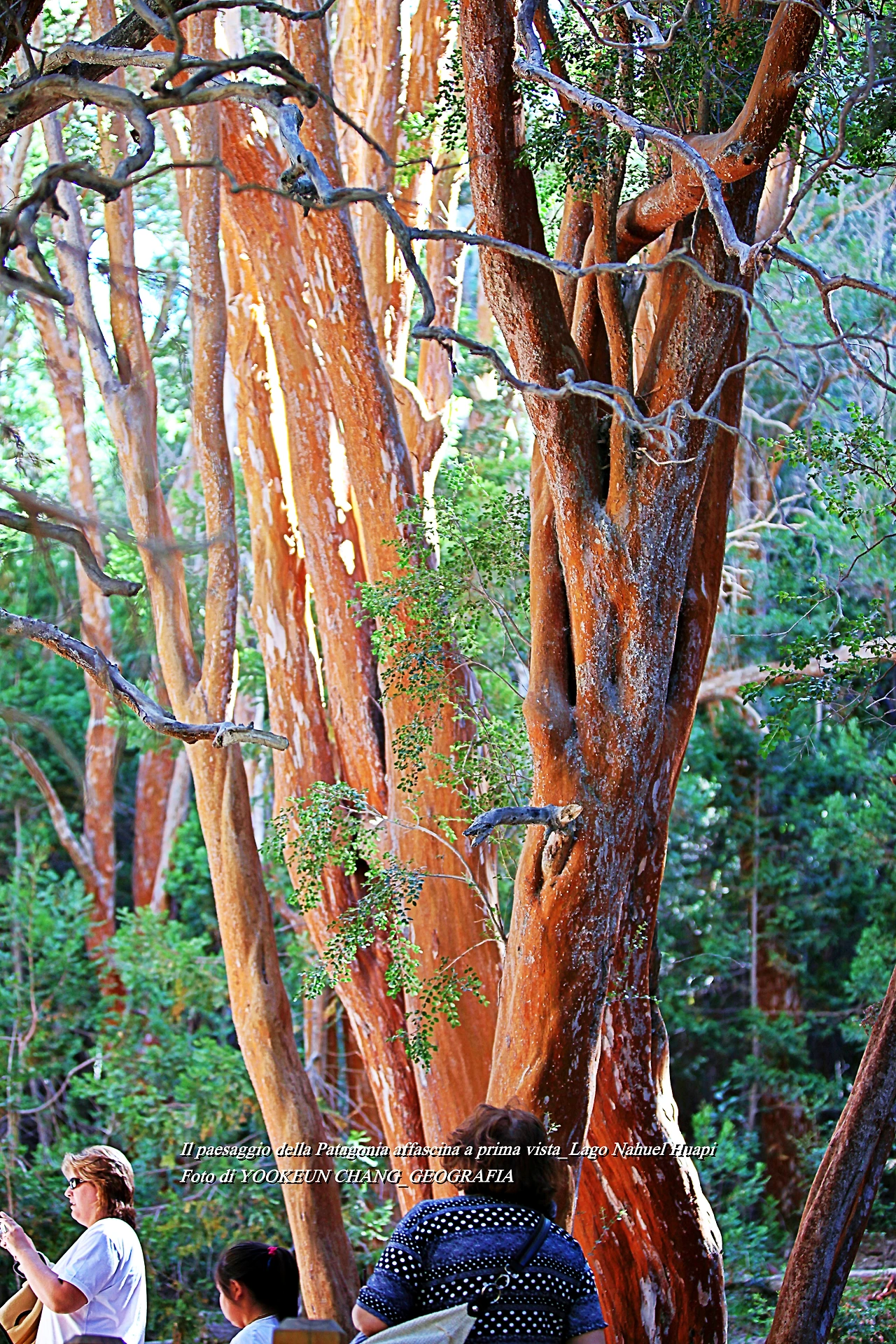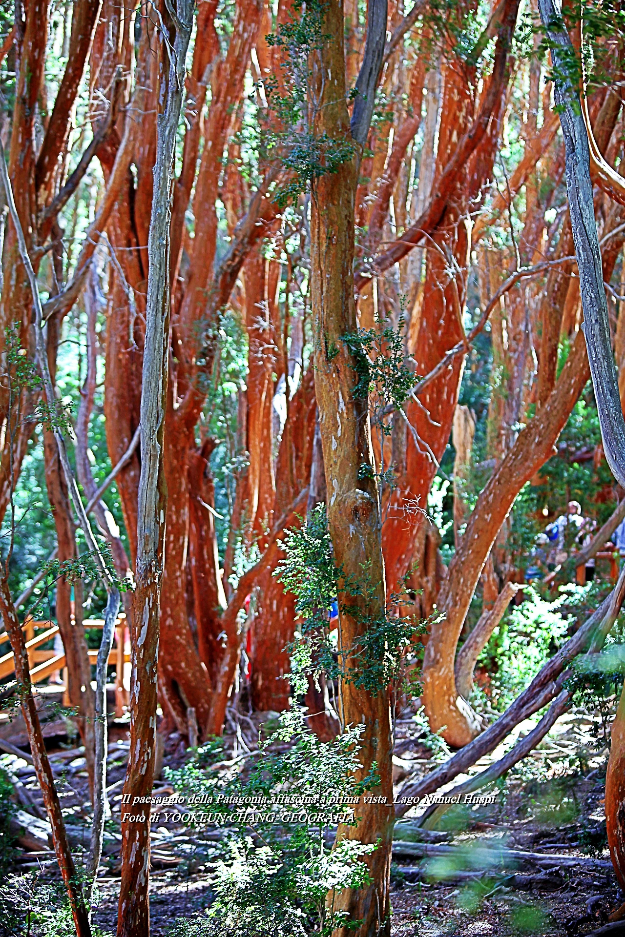 유람선 상갑판에서 바라본 숲 공원의 풍경 가운데 계피색으로 도드라져 보이는 나무들이 오늘의 주인공이다. 우리 행성의 다른 지역에서 만날 수 없는 아라야네스 군락지.. 칠레의 로스 라고스 주 북부 파타고니아에서 발견되는 군락지의 나무들은 줄기가 가는 편에 비해 이곳에는 고목과 거묵들은 물론 새로 돋아난 작은 나무들이 사람들을 맞이하고 있다. 그 현장은 이러하다.