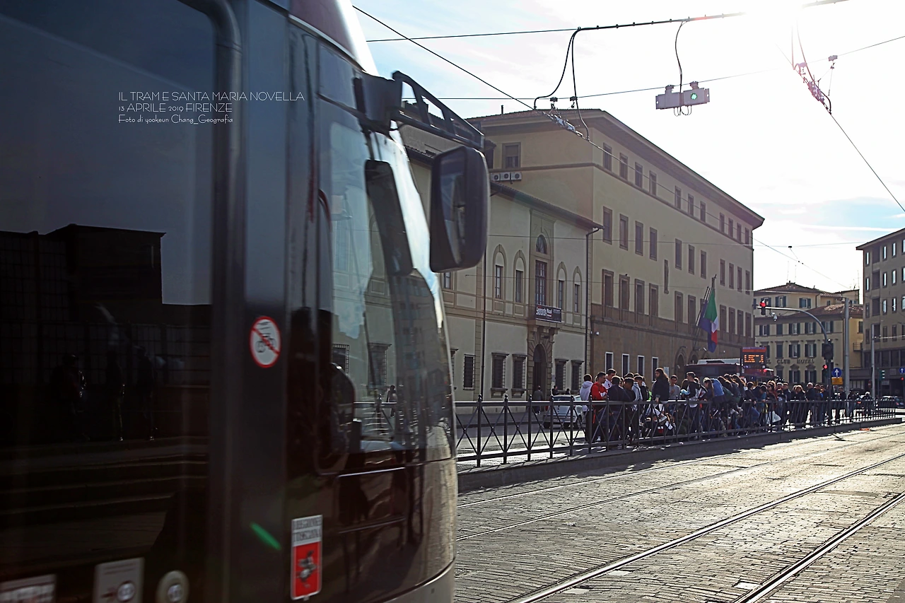 어느 날, 직선과 곡선이 조화를 이룬 산타 마리아 노벨라 역전의 풍경을 사진과 영상에 담았는데 그 과정이 재밌었다. 귓전을 자극하는 쇳소리를 내며 미끄러지듯 천천히 움직이는 전차는 물론 승객들이 빤히 들여다 보이는 전차의 움직임이 호기심을 끌었다. 전차를 움직이게 하는 원동력은 직선 위의 전선에 있고, 그 아래 곡선은 전차가 다닐 수 있는 철로가 길게 이어지고 있는 것. 사람들은 직선과 곡선 위에서 살아가고 있었다.