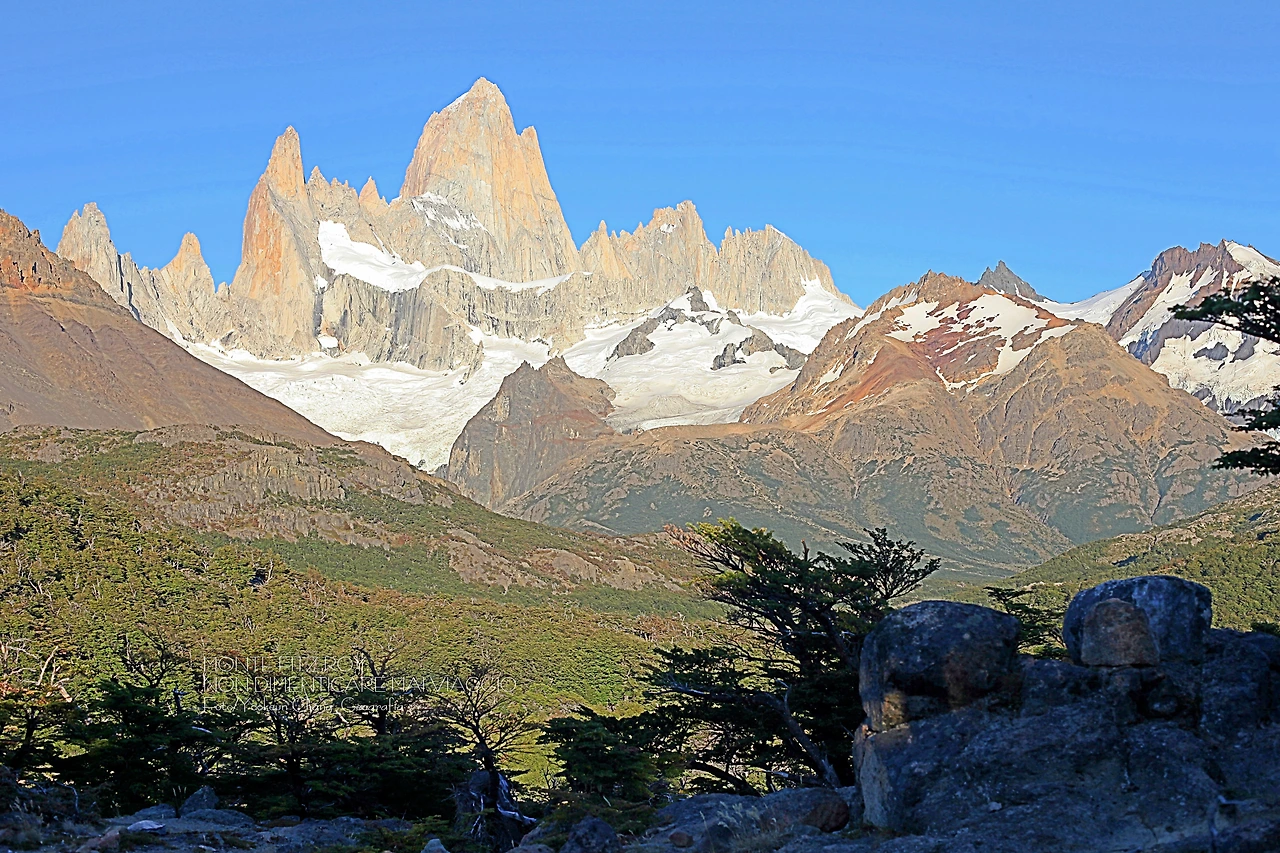 자료사진에서 보이는 피츠로이 암봉 바로 아래까지 가야 하며 오솔길을 따라 그저 앞만 바라보고 걷고 또 걸었다. 나중에 안 일이지만 피츠로이를 등반하는 트레커들은 봉우리 아래 캠핑장에서 1박을 하는 등 충분한 준비를 한 다음에 봉우리 아래까지 등반을 했다.