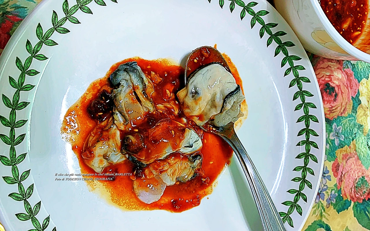 지중해의 에메랄드 빛 푸른 바다가 눈앞에 다가왔을 때 모처럼 쌀밥에 겉절이 김치를 먹던 풍경이 머릿속을 스쳐 지나갔다. 우리나라서 7개월을 머물다 다시 이탈리아의 우리 집에 도착한 던 불과 한 달 보름 남짓한 시간이 흘렀을 뿐인데 내 기억 속에 또렷이 남은 맛깔난 음식들이 껄떡임을 재촉하는 것이다. 녀석의 정체는 다름 아닌 생굴이며 당시에 먹었던 장면을 카메라에 담아두었다. 그래서 하니와 함께 맛있게 먹었던 '나 만의 생굴 먹는 세 가지 방법'을 담게 됐다.