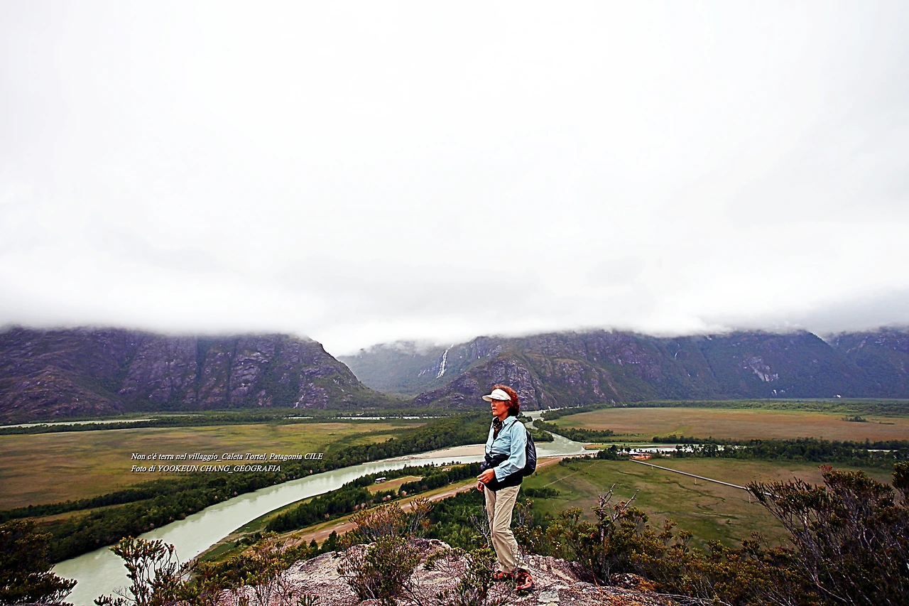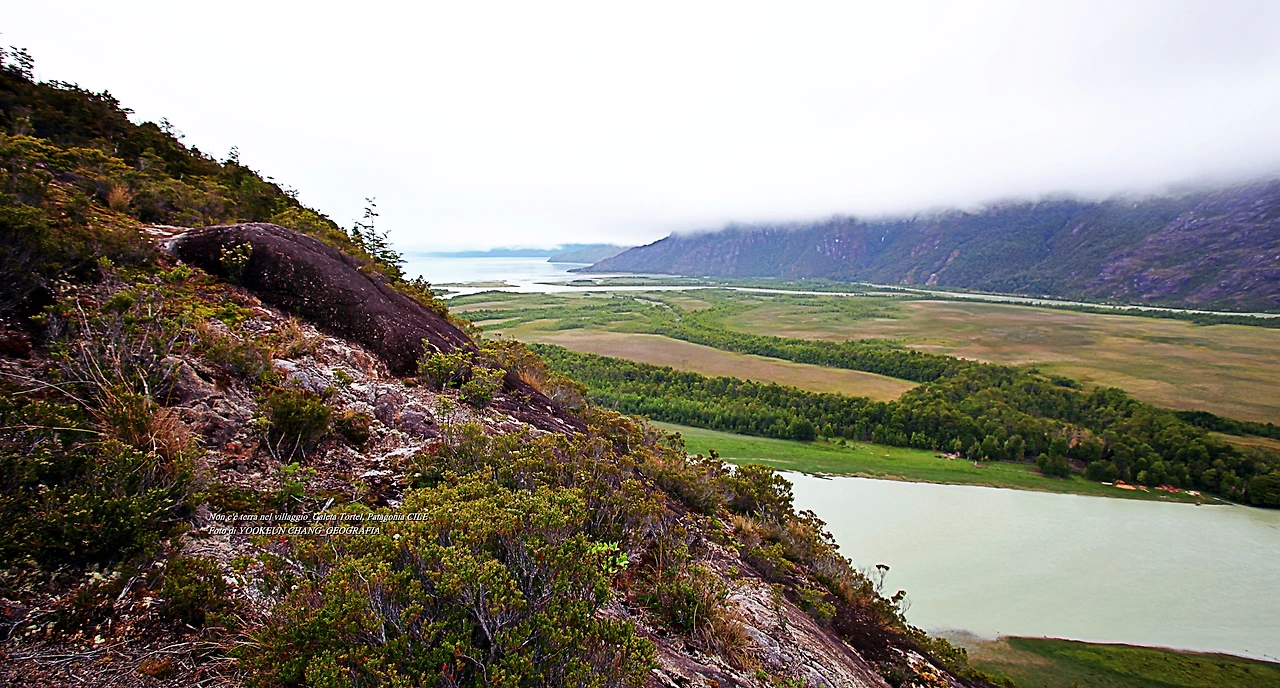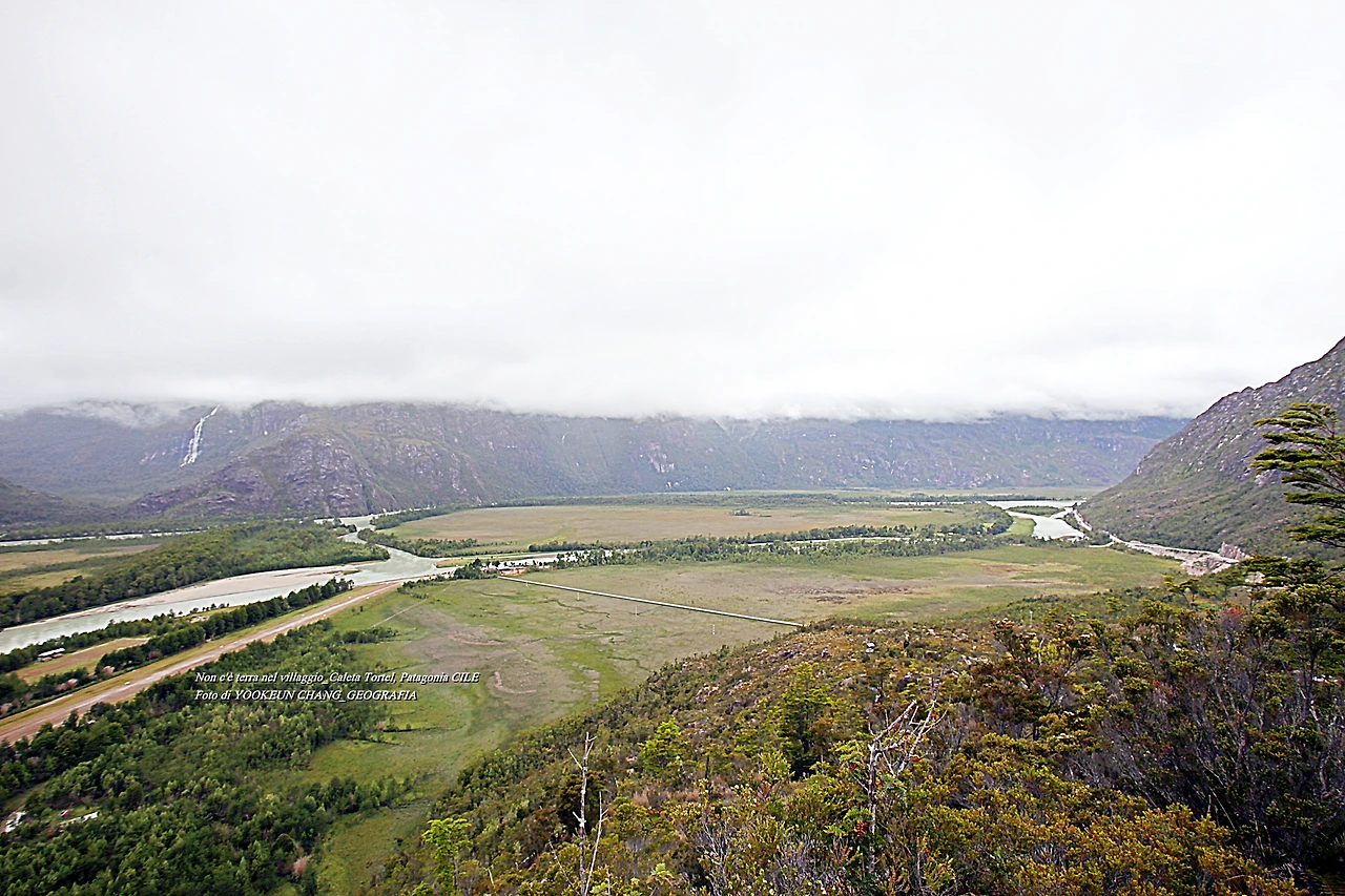 하니와 나는 또르뗄 뒷산에 올라 리오 꼬끄랑 하류와 동태평양의 피오르드 협곡 사이에 위치한 절경을 눈에 담고 있는 것이다. 안개와 구름이 무시로 피오르드를 감싸며 절경을 만드는 곳.
