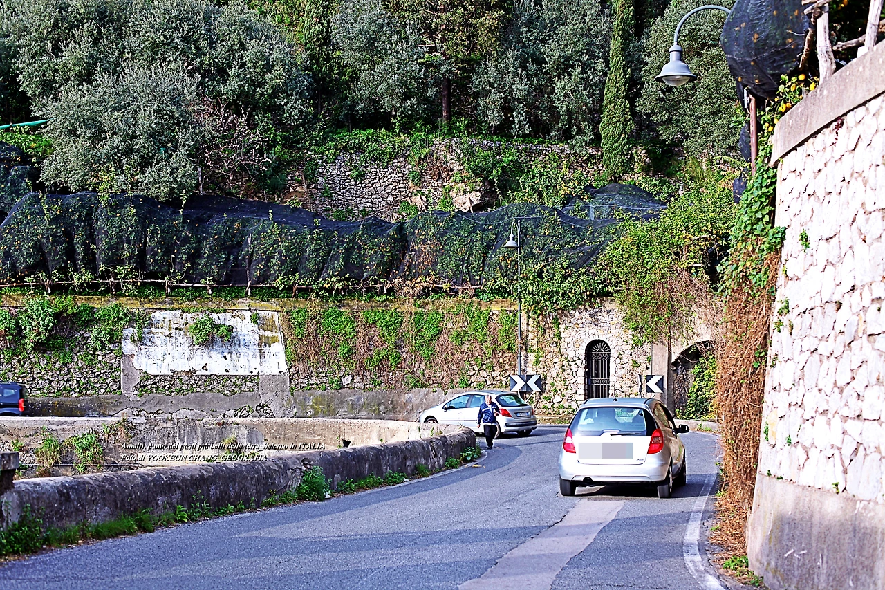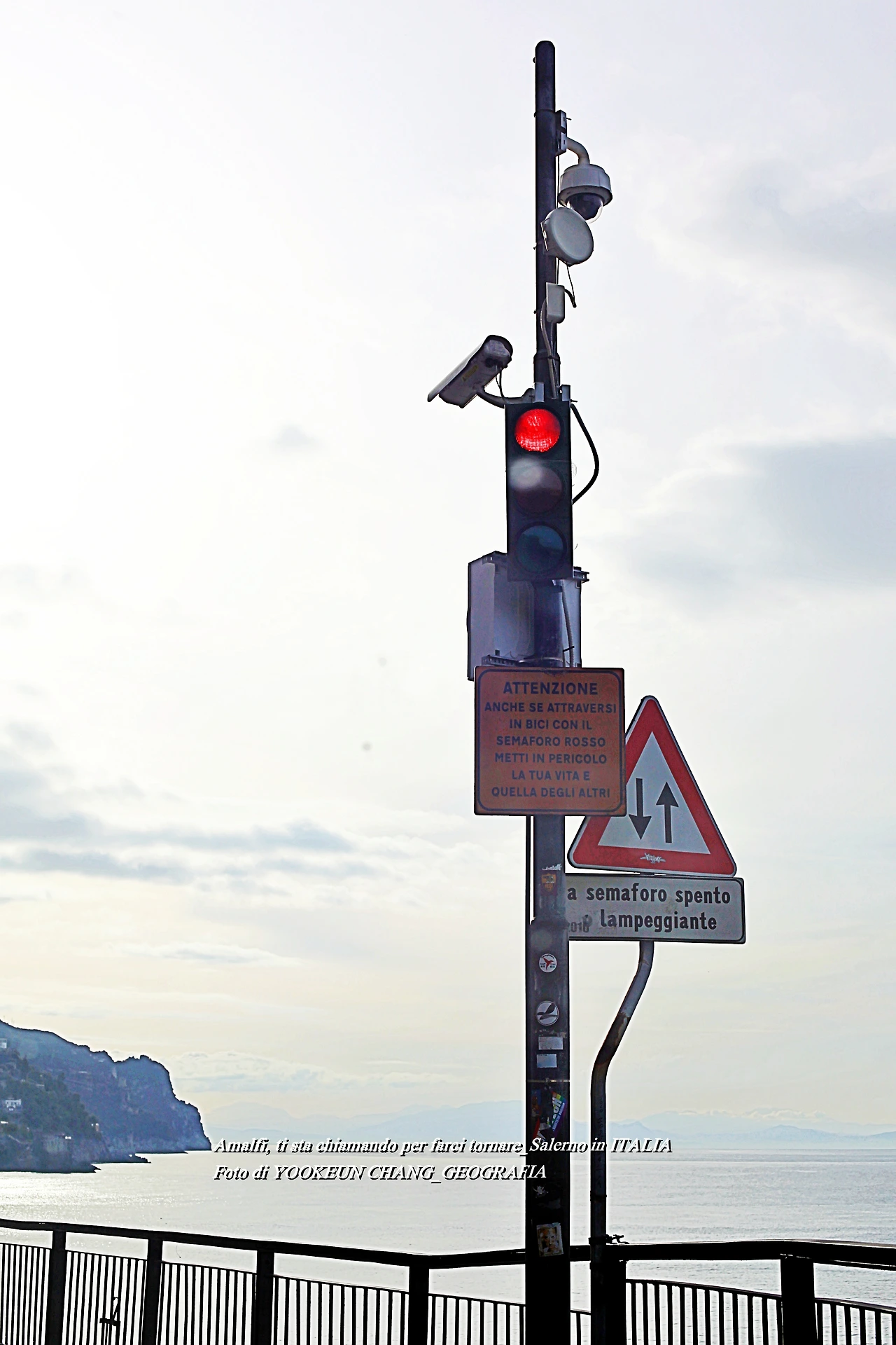 잡으로 돌아가는 여정에 빨간 신호등에 불이 켜졌다. 길이 좁아 한 차선만 운영하고 있는 것이다. 그렇지만 여행자의 눈에는 집으로 돌아가는 나를 붙잡는 것처럼 느껴진다. 아말피로 올 때는 벼랑 끝 우측으로 운행을 했으므로 절경이 가렸지만, 돌아가는 길에는 아말피 해안선을 바라보고 운행을 하고 있는 것. 아말피의 아름다움이 제우스의 일탈처럼 나를 붙든다.