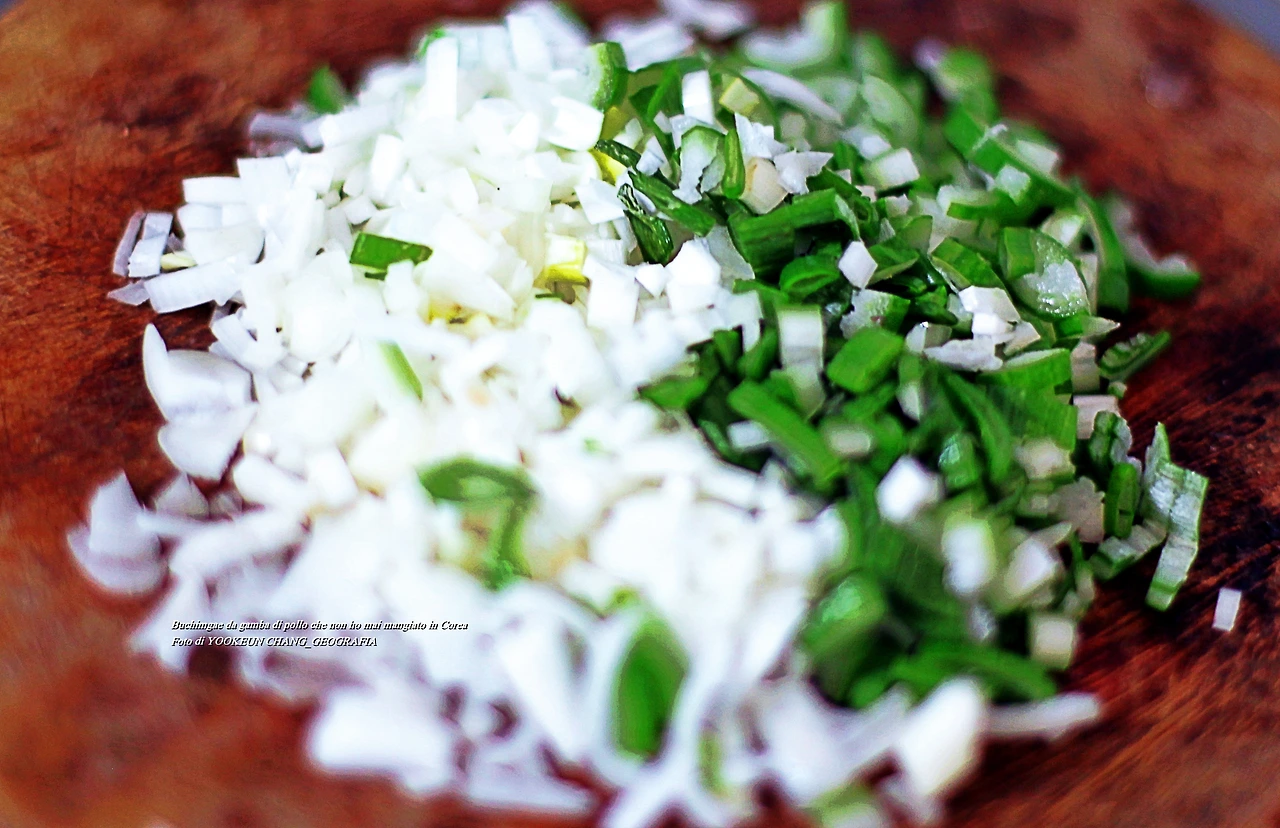 그리고 대파를 준비하여 총총총 잘게 썬다. 이날 사용한 대파는 1 kgX 1유로짜리로 거의 공짜나 다름없는 가성비를 자랑한다. 이록 바를레타의 제철 식재료이며 몸에 너무 좋은 녀석이다. 굵직한 대파 한 개를 모두 썰어 볼에 담았다.