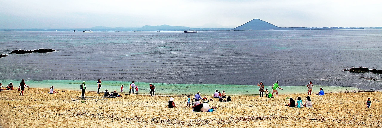 현재 바라보고 있는 풍경은 우도의 명소 서빈백사의 모습으로 사람들이 물놀이를 즐기거나 아름다운 풍경을 감상하고 있는 모습이 쉽게 눈에 띈다. 에메랄드빛으로 부서지는 햇살 아래 하얗다 못해 푸른빛이 감도는 서빈백사해변. 우도 서쪽의 하얀 모래해변이라 하여 서빈백사로 불린다.
