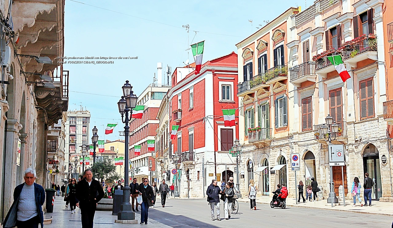 이탈리아의 삼색기가 나부끼는 이 길은 시내 중심이자 자주 애용하는 길이다. 이 길을 따라 대략 10분 정도 걸으면 바를레타 재래시장이 나타난다. 단언컨대 우리 행성 최고의 가성비를 자랑하는 곳. 사흘 전 시장에서 장을 봐 왔는데 그중 양상추가 포함됐다.