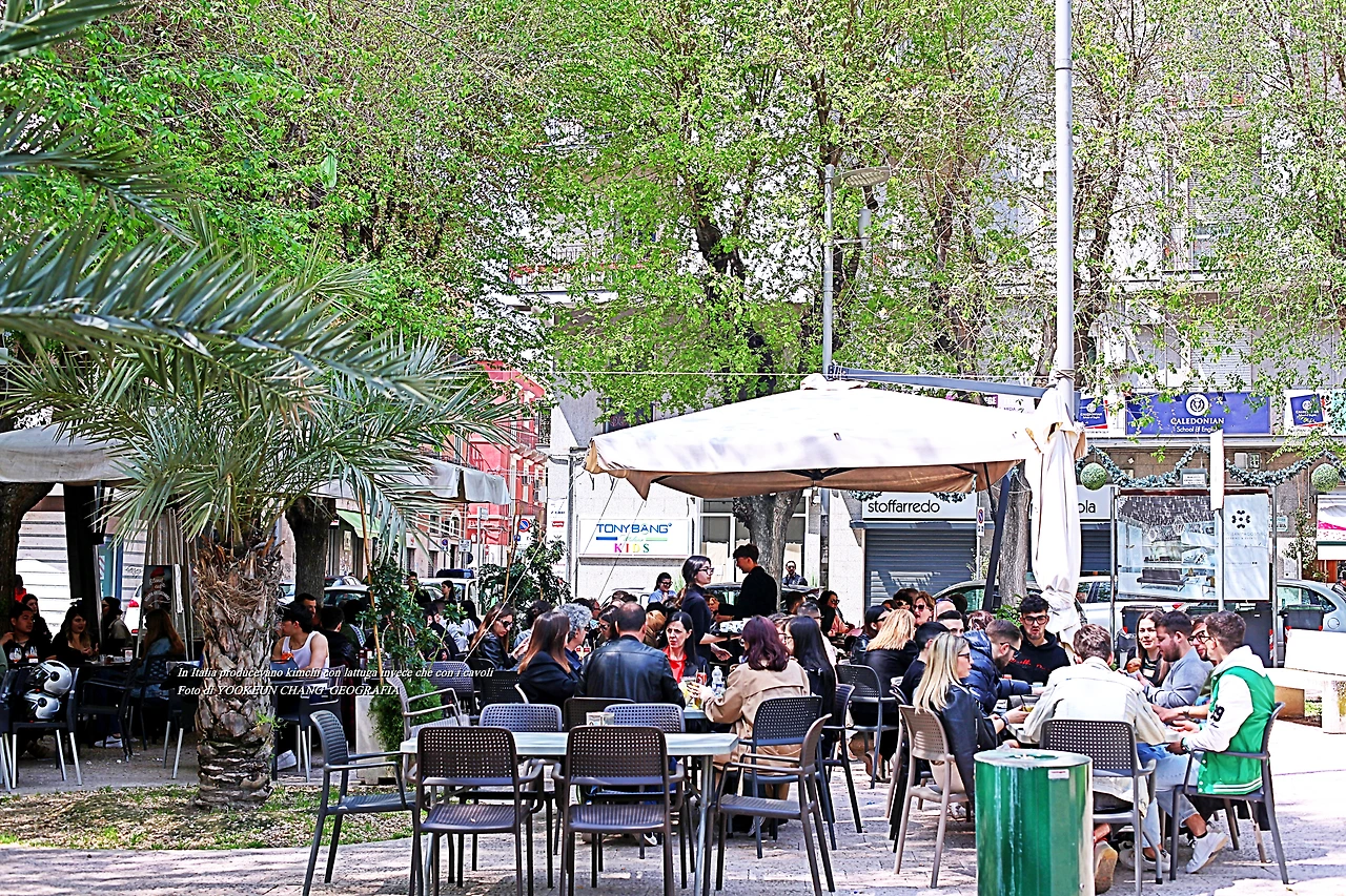 공원 한편에 마련된 까페에 사람들이 붐빈다. 사람들의 머리 위에 봄이 무르익는 모습은 안중에도 없다. 이분들은 김치에 대해 들어봤음 직도 하나 여전히 쁘로슈또나 살라메를 즐기는 민족들이다. 이탈리아에도 배추가 있기는 하다. 그렇지만 그들은 김치를 담가먹지 못하거니 안 한다. 소수의 동양인들이 찾는 배추 속에 깃든 양상추로 만든 김치가 에라끌리오 발등처럼 반들반들 입맛을 사로잡다니.. 땡 잡은 날이다. ^^